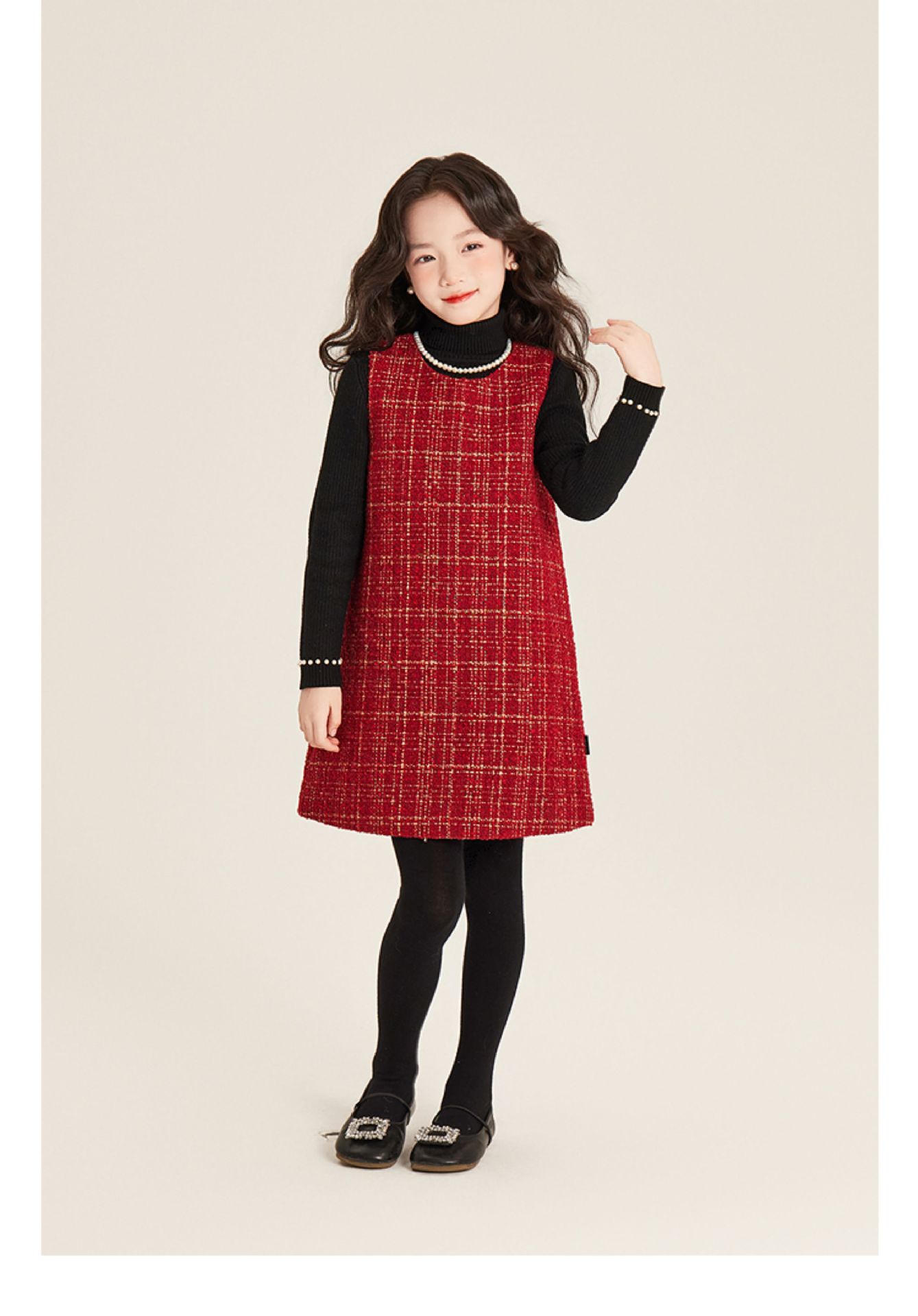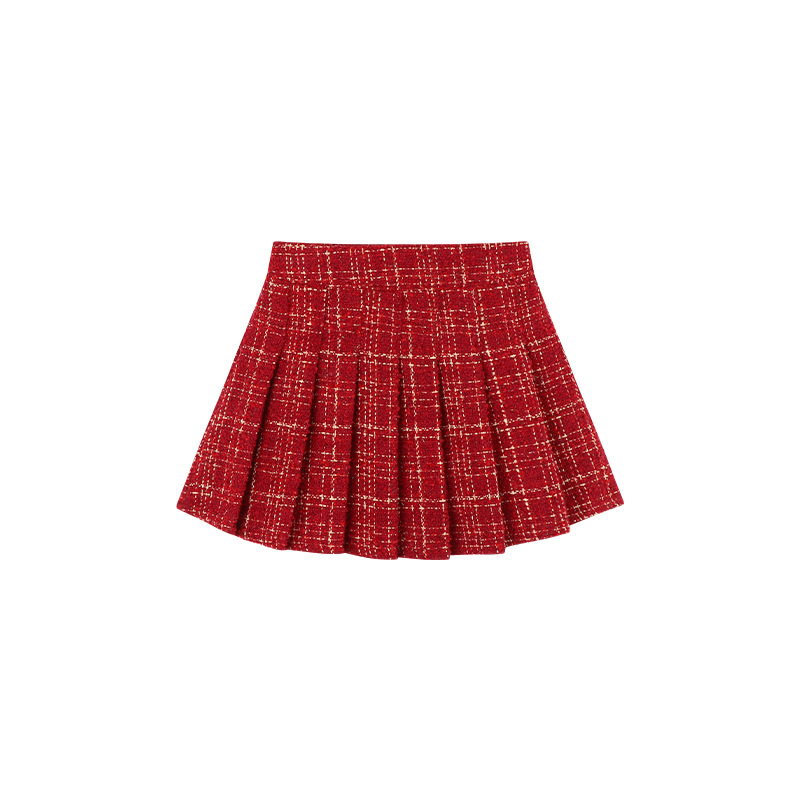 • 레드 모직 플리츠 스커트