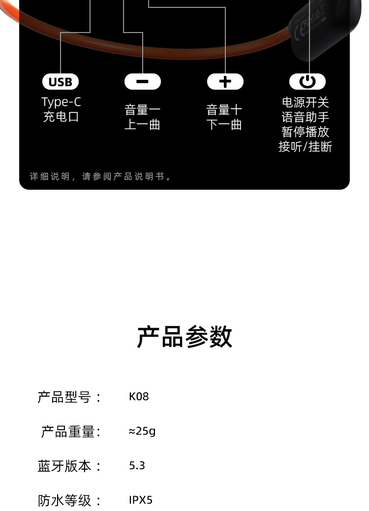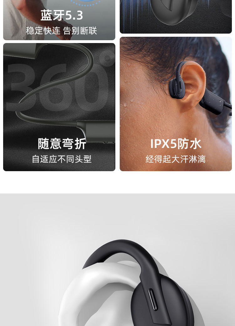 스포츠 및 달리기용 k08 진정한 골전도 헤드폰 특수 블루투스 귀걸이형 2024 새로운 무선 비인이어 공기 전도스토어 가기