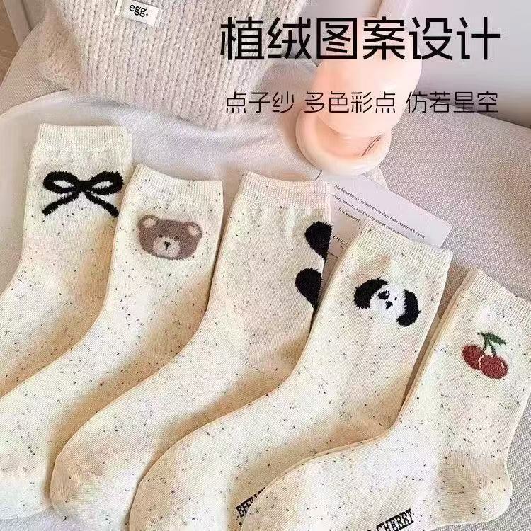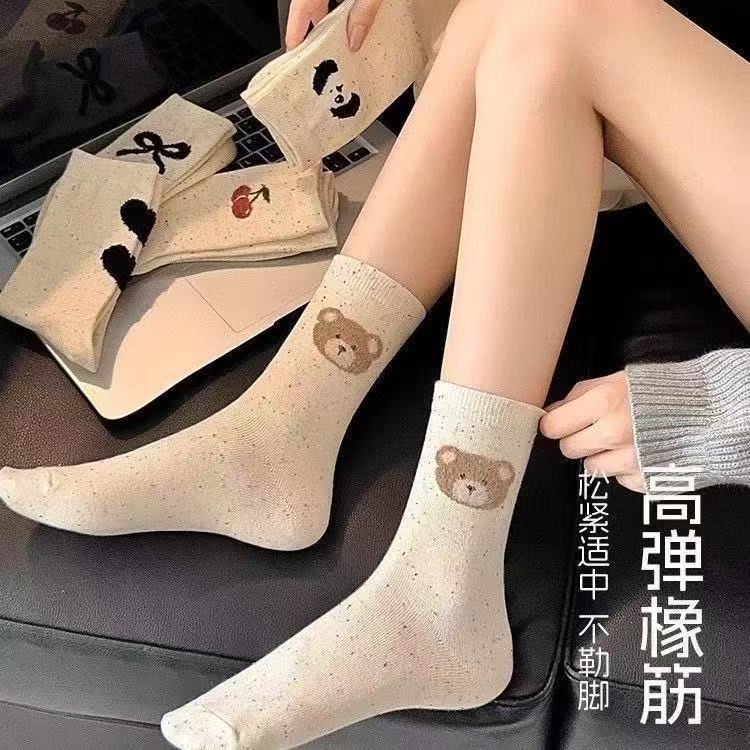 디자인사카툰곰 양말 여성용 중목 양말 ins 트렌드 가을겨울 일본풍 귀여운 강아지 파일드삭스 도매