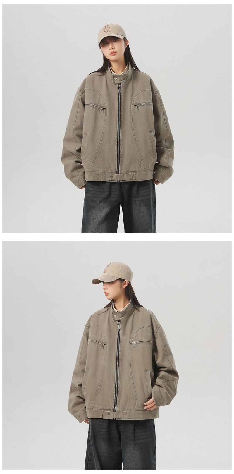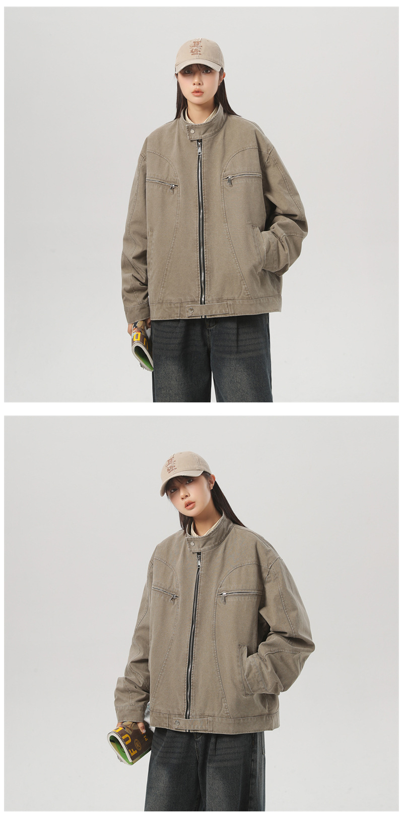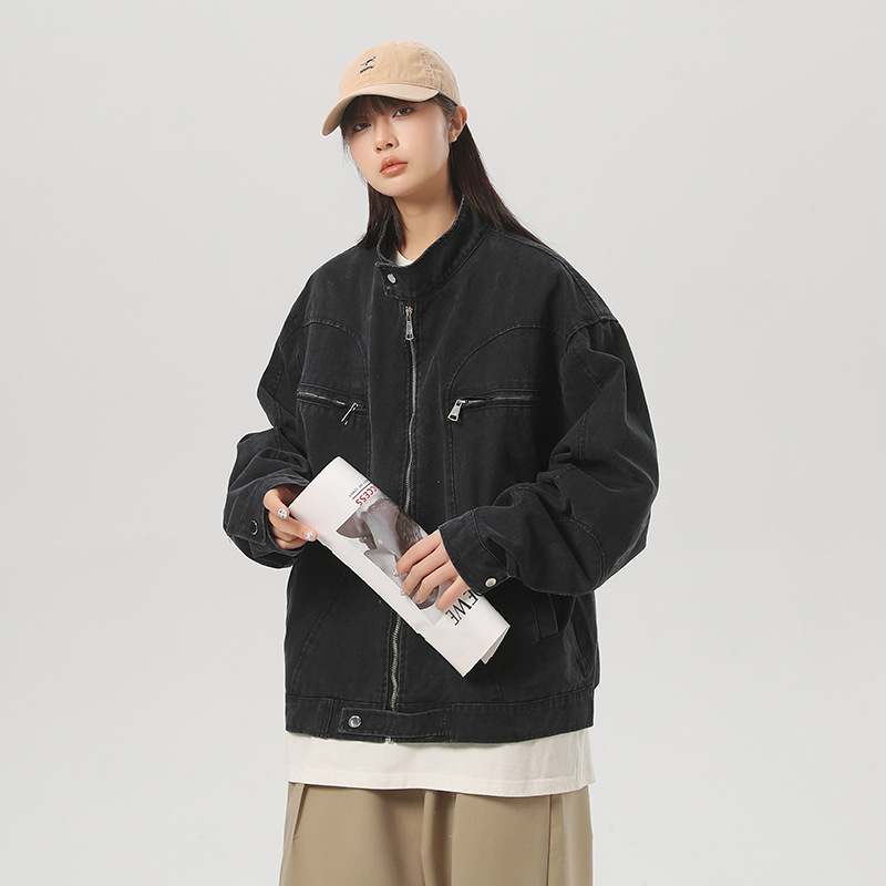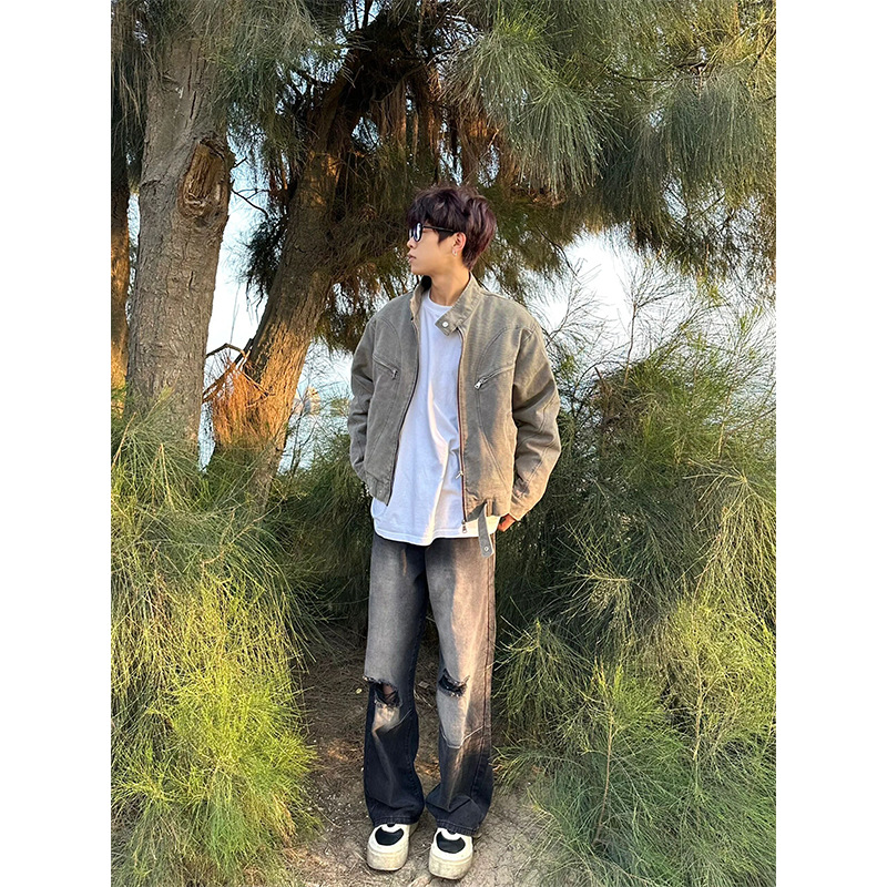 세탁 된 그레이 칼라 데님 재킷 남성 봄 레트로 트렌디 브랜드 지퍼 짧은 재킷 미국 스타일 디자인 센스 재킷스토어 가기