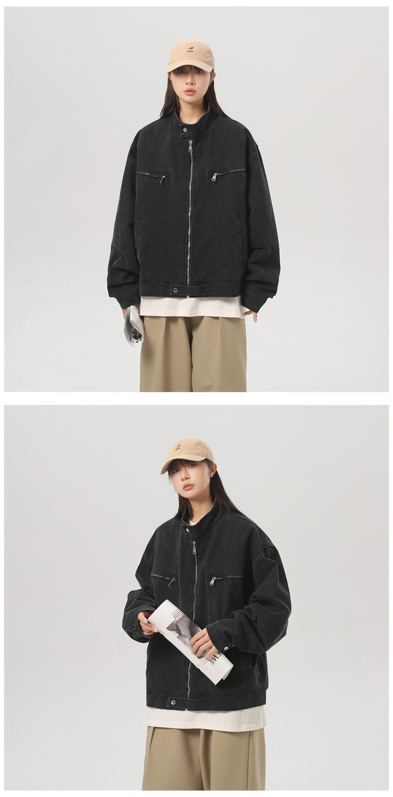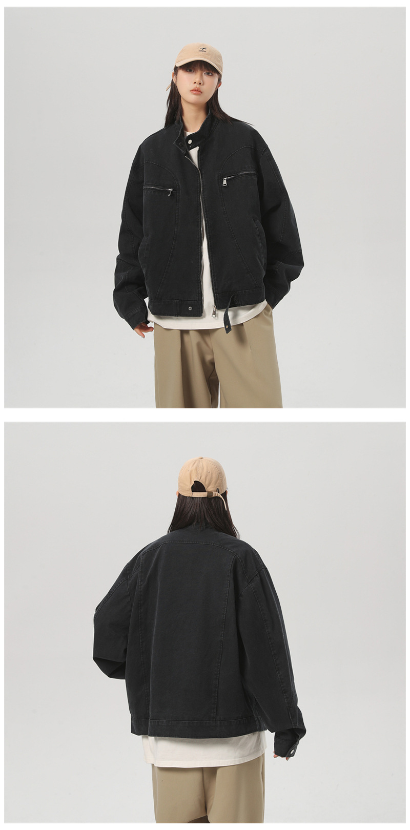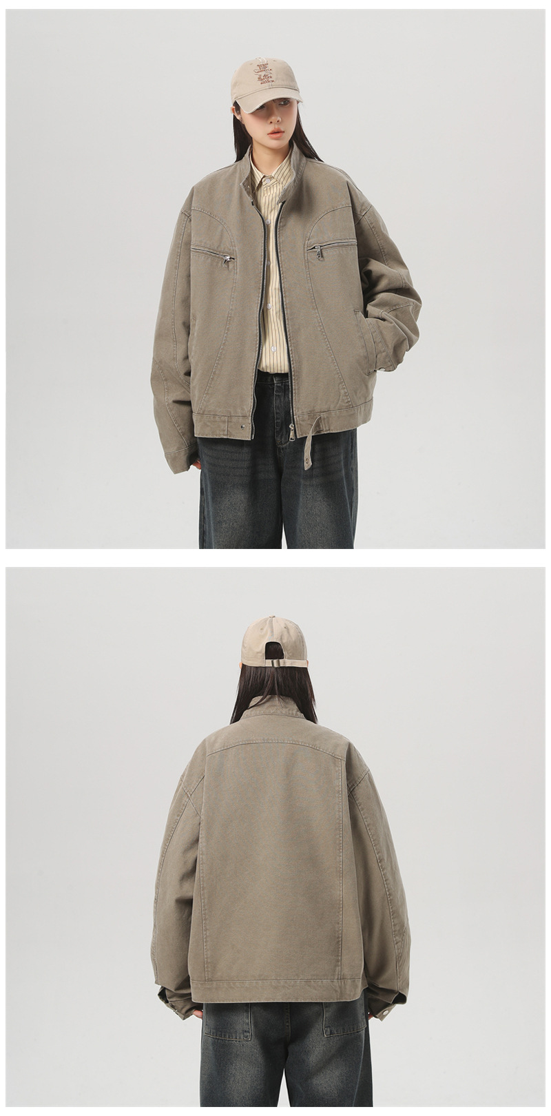 세탁 된 그레이 칼라 데님 재킷 남성 봄 레트로 트렌디 브랜드 지퍼 짧은 재킷 미국 스타일 디자인 센스 재킷스토어 가기