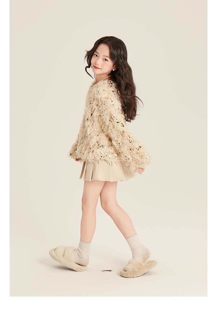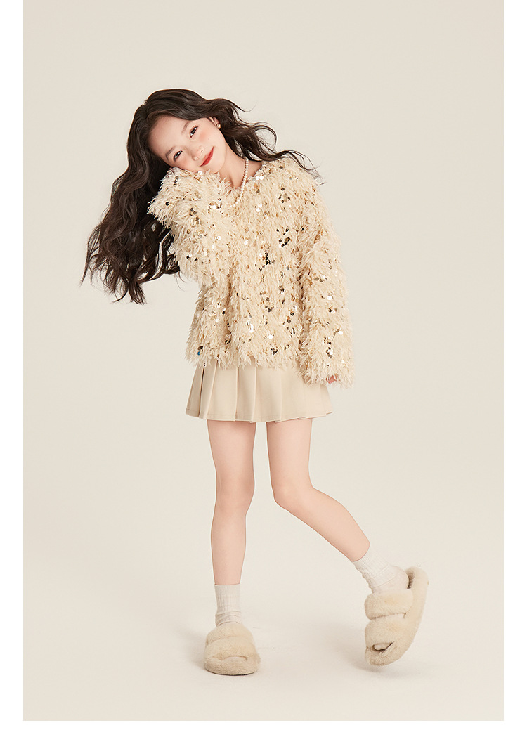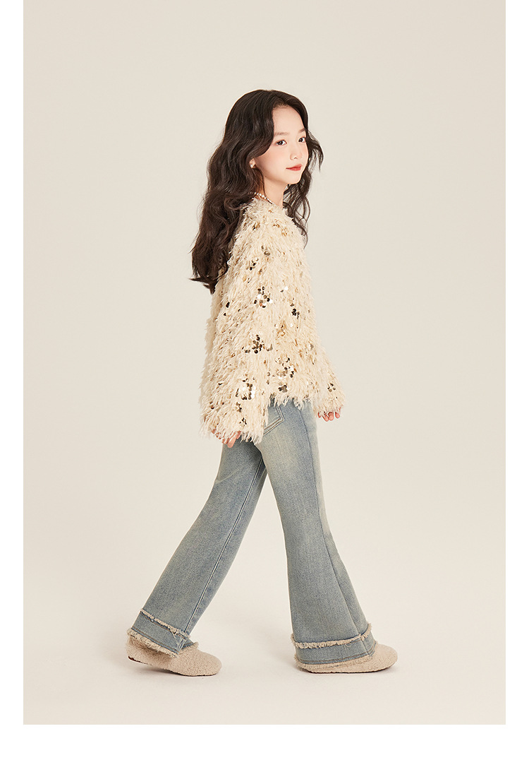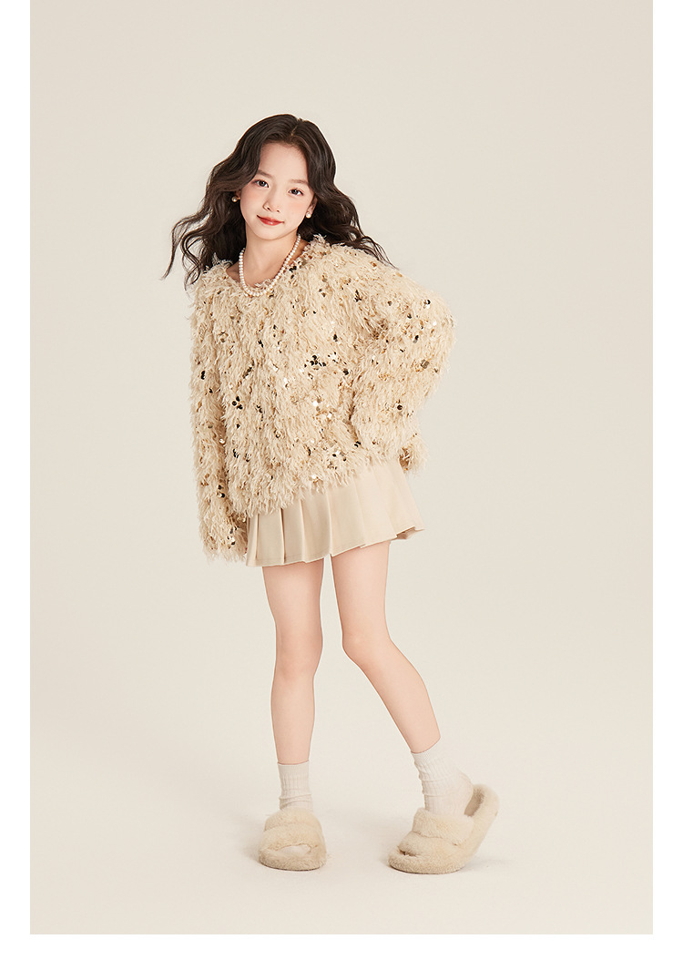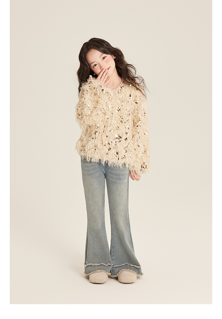Amybaby Girl's Winter 2024 새로운 프랑스 스타일 우아한 분위기 깃털 Sequin Tassel Top