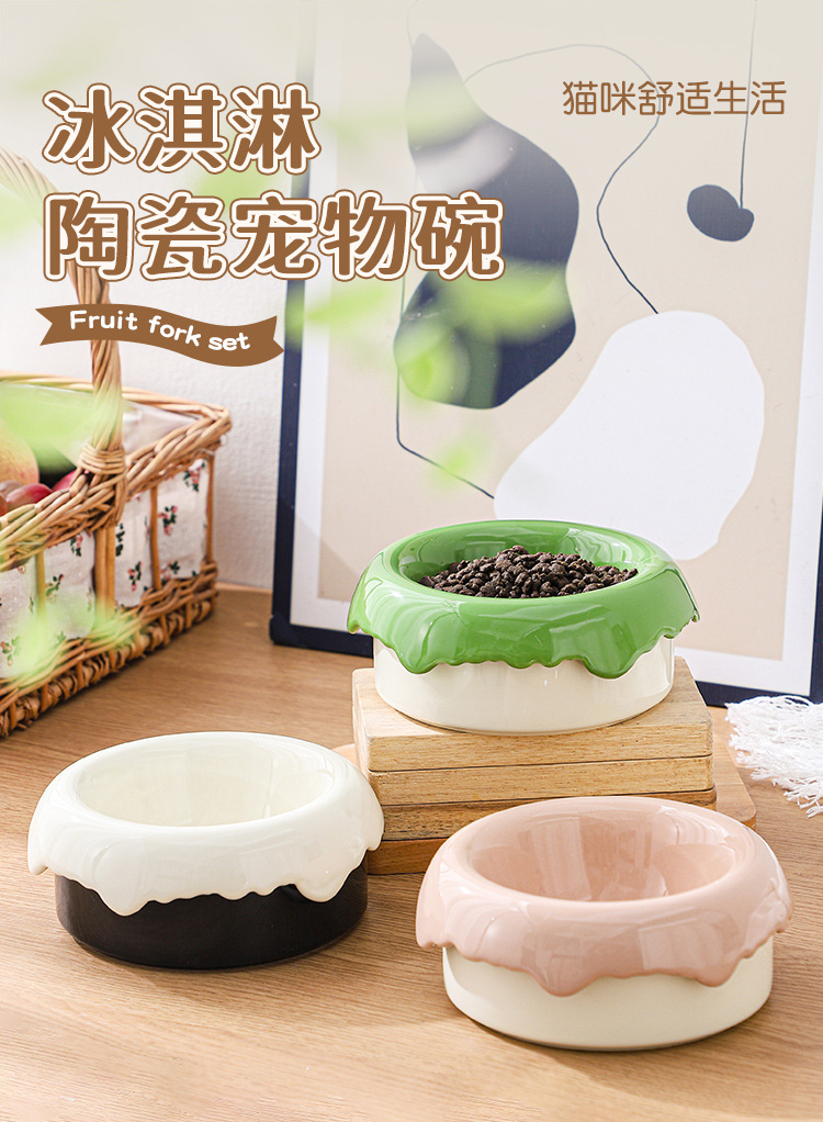 국경 간 창조적 인 아이스크림 세라믹 고양이 그릇 애완 동물 그릇 높은 발 안티 노크 고양이 음식 그릇 개 음식 그릇 목 보호 식수