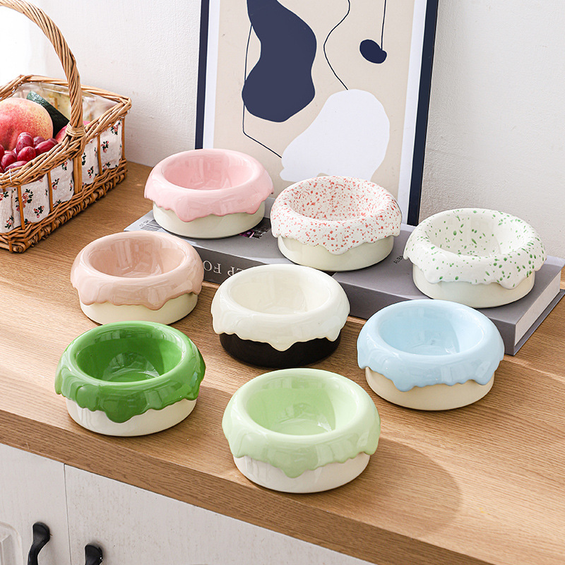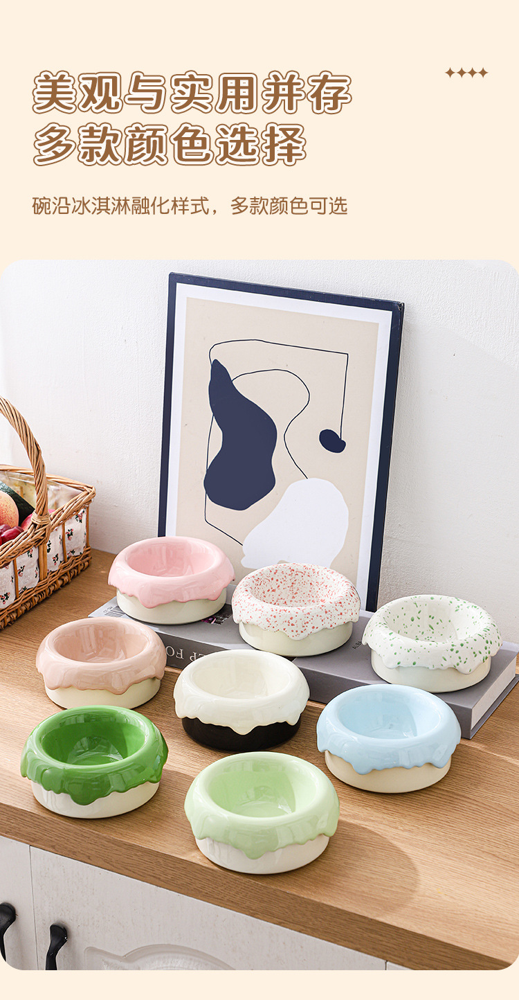 국경 간 창조적 인 아이스크림 세라믹 고양이 그릇 애완 동물 그릇 높은 발 안티 노크 고양이 음식 그릇 개 음식 그릇 목 보호 식수스토어 가기