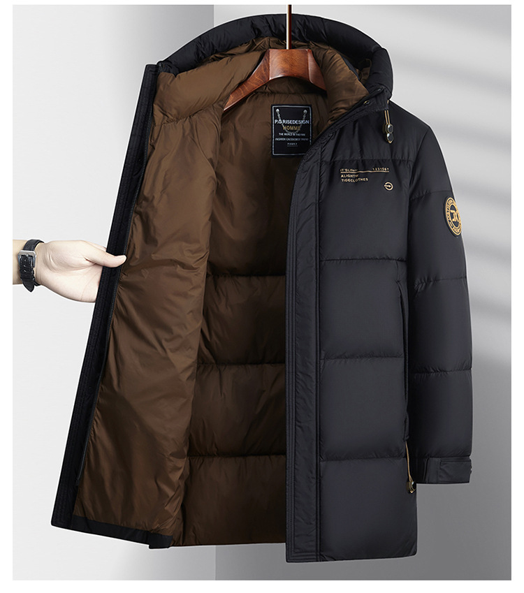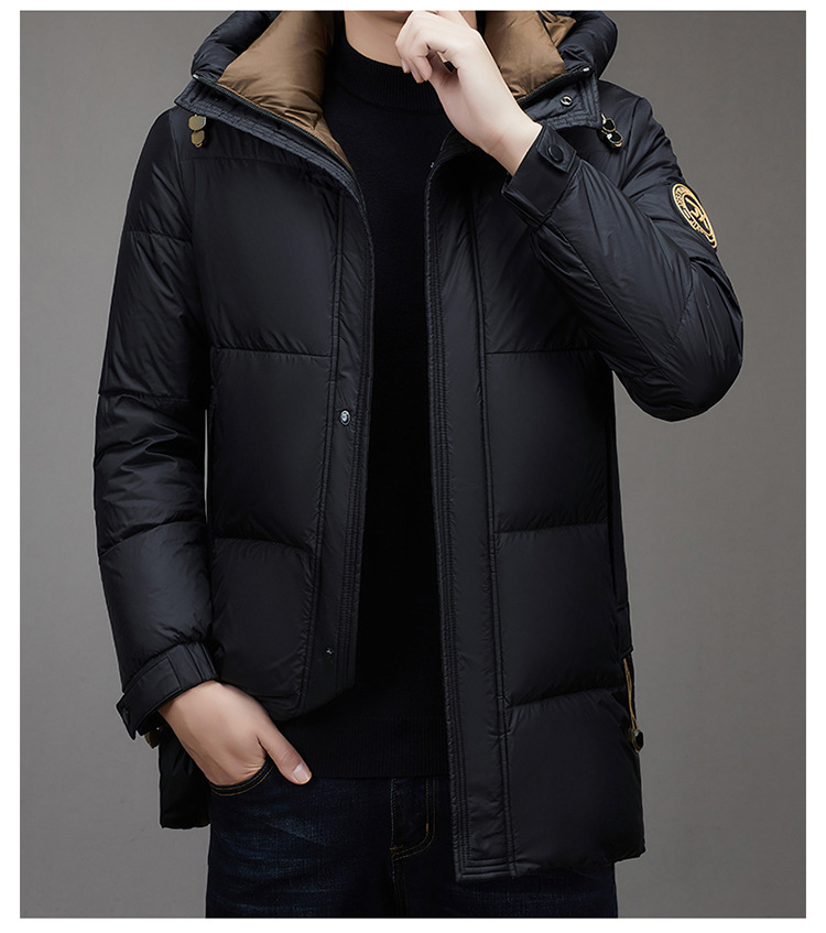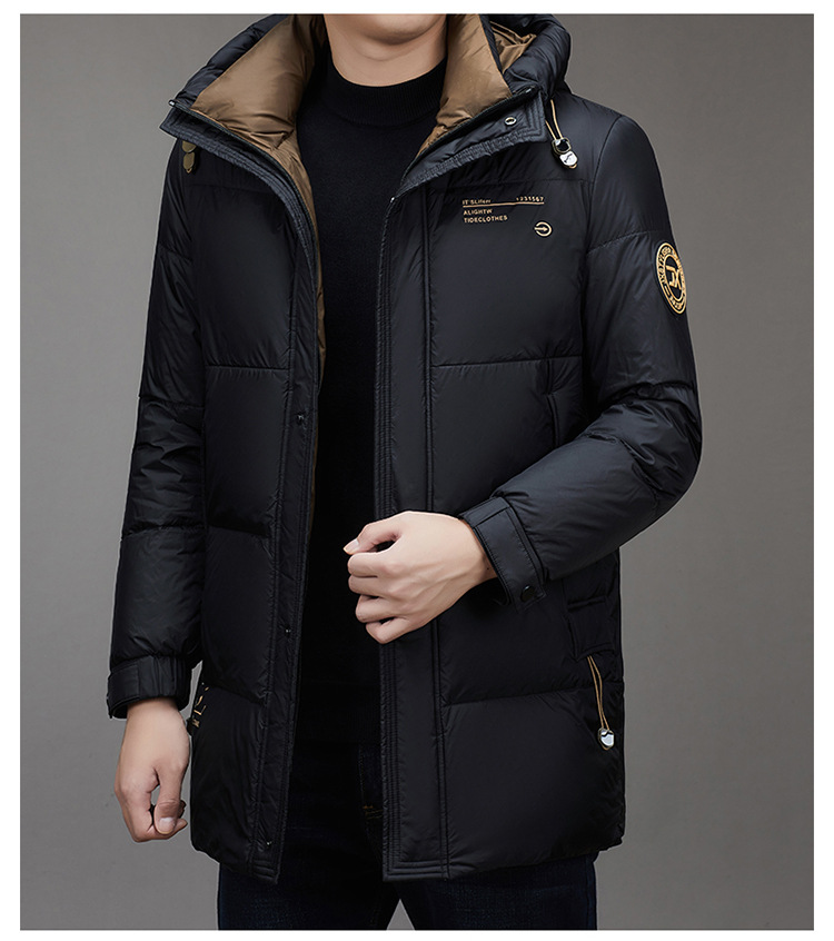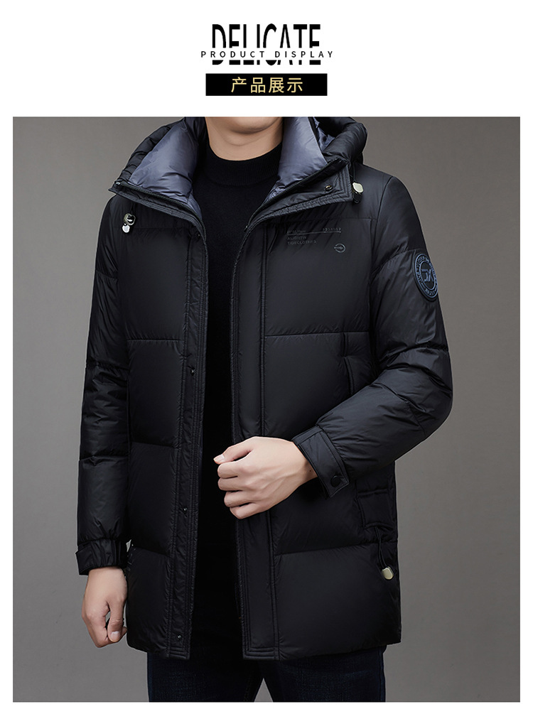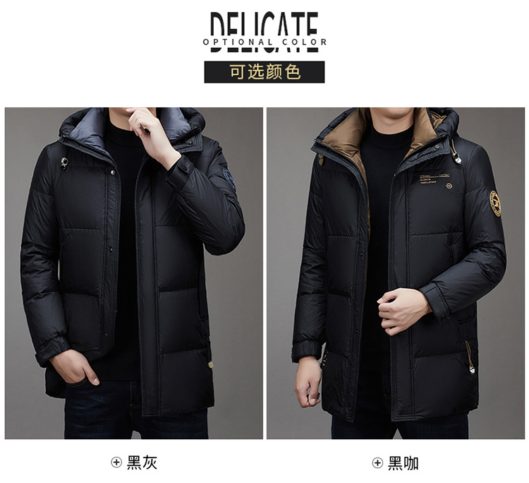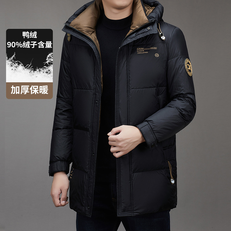 새로운 다운 자켓 남자의 겨울 두꺼운 90 캐시미어 감기 자켓 중간 길이의 캐주얼 중년 남성 유행 겨울 옷스토어 가기