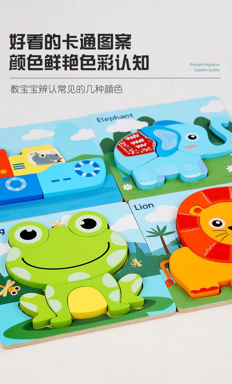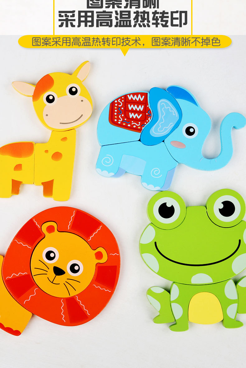 Weiweihu 어린이 장난감 계몽주의 만화 동물 차량 3D 스테레오 나무 퍼즐 어린이 인지 장난감스토어 가기