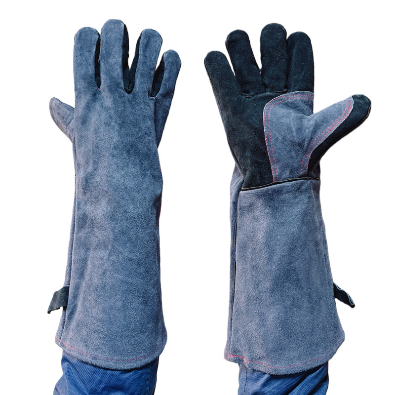 재고 도매 40cm 소 가죽 긴 전기 용접 장갑 이중 단열 고온 방지 스플래시 컷 용접기 장갑