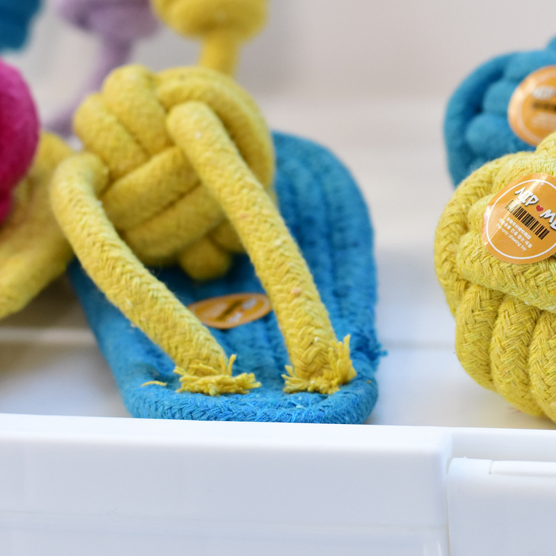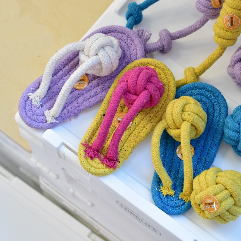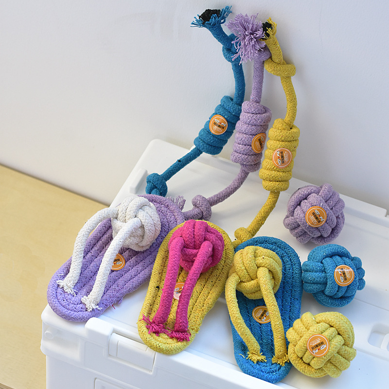 귀여운 Ins 스타일 대조 컬러 애완 동물 매듭 장난감 슬리퍼 매듭 볼 매듭 버클 강아지 바이트 해체 장난감스토어 가기