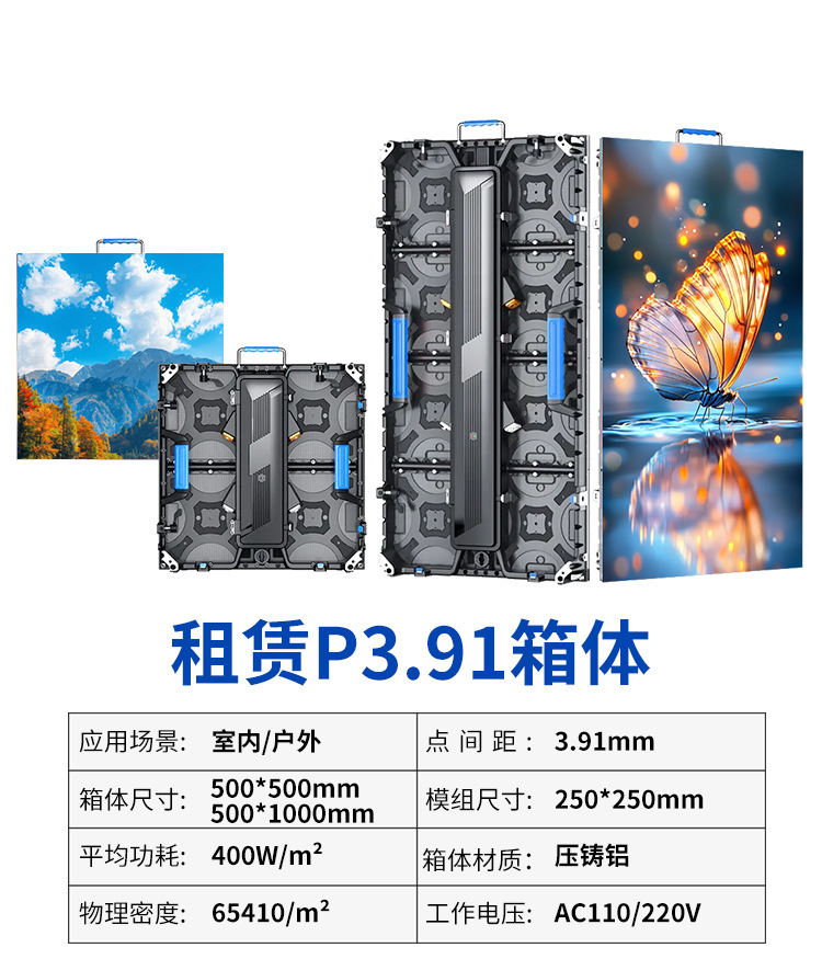 以下是关于P3.91租赁屏的一些详细参数,这些参数可以帮助您更好地了解该产品的性能和技术规格。