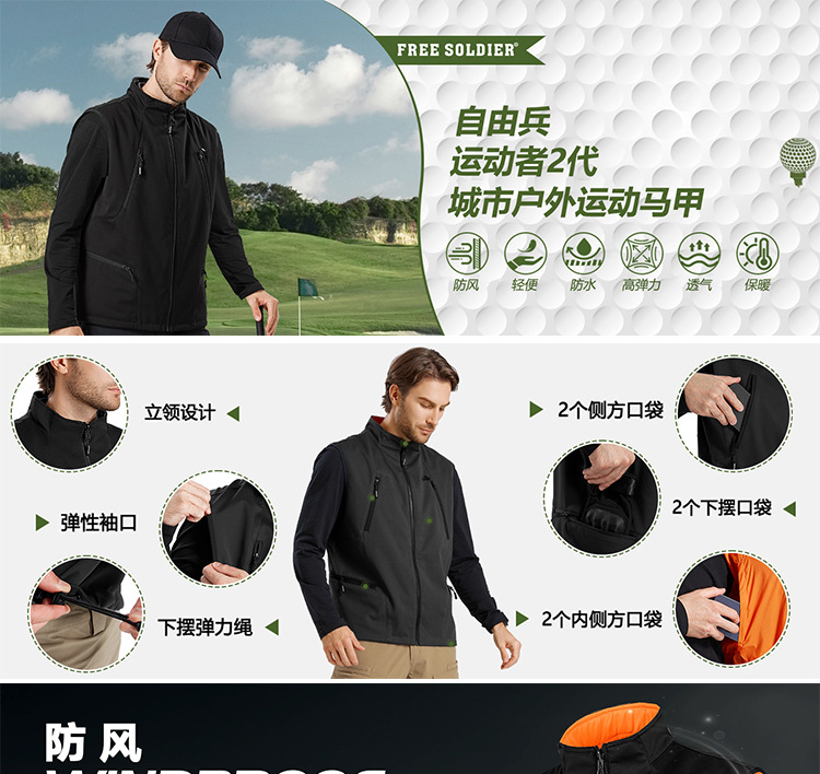 프리비이어 크로스보더 가을 겨울 남성용 양면 조끼 폴라 플리스 보온 스탠드 칼라 하이킹 아웃도어 조끼스토어 가기