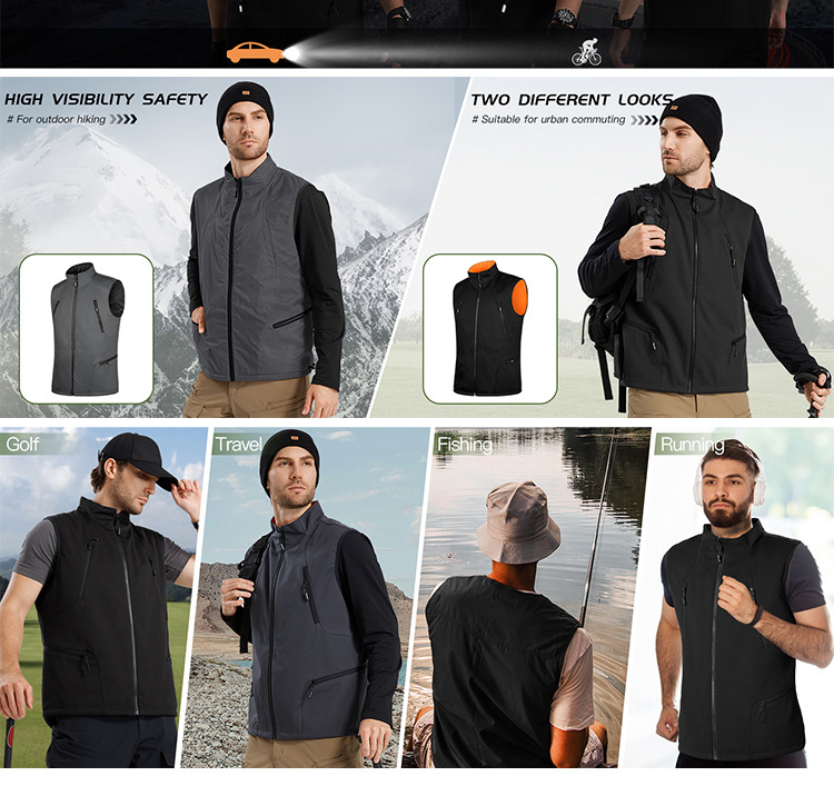프리비이어 크로스보더 가을 겨울 남성용 양면 조끼 폴라 플리스 보온 스탠드 칼라 하이킹 아웃도어 조끼