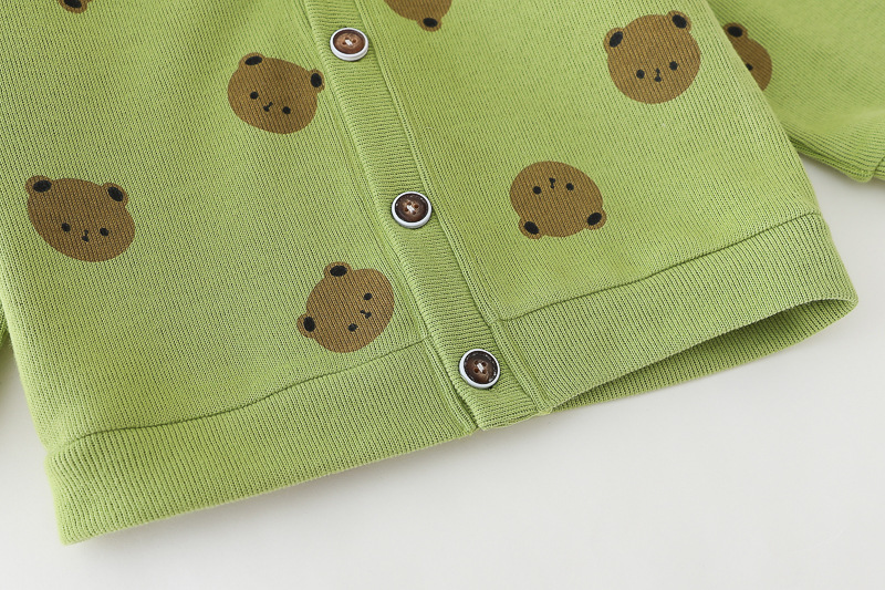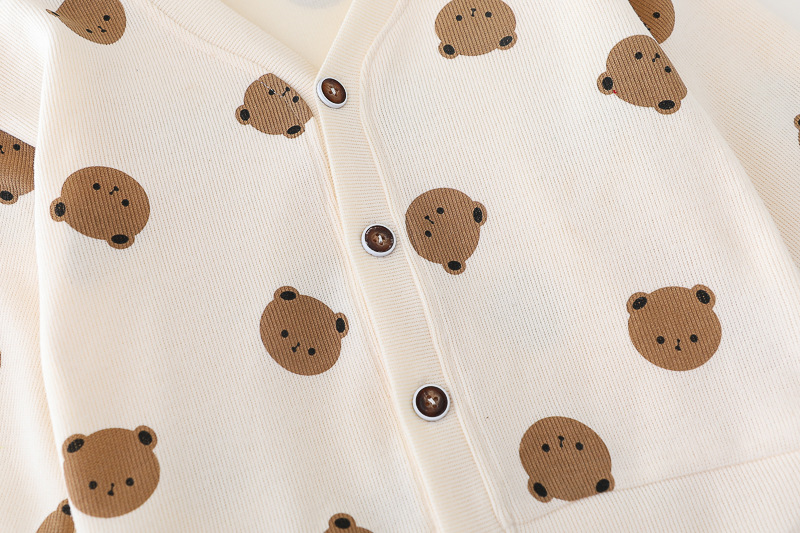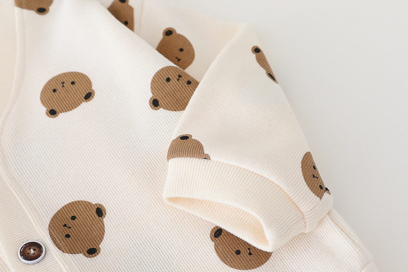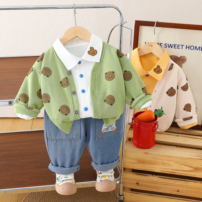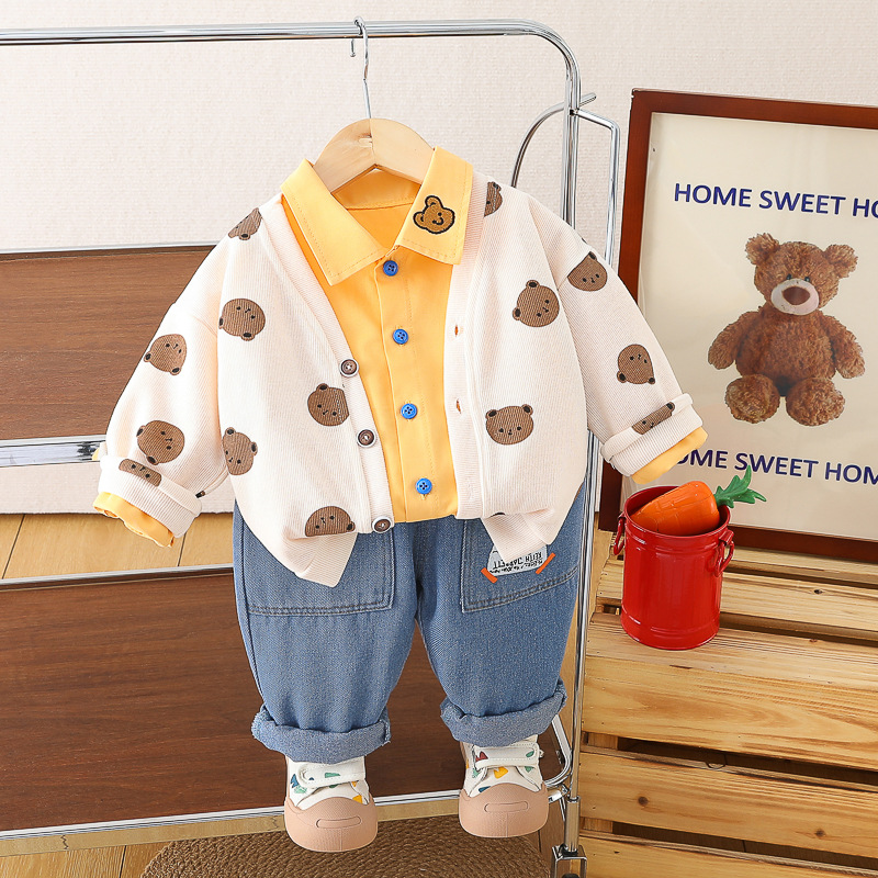 남자 아기 봄 곰 머리 셔츠 카디건 세트 2025 새로운 한국 스타일 튀김 거리 캐주얼 청바지 3 조각 세트스토어 가기