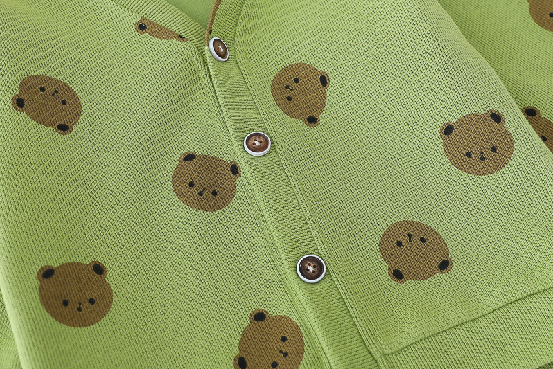 남자 아기 봄 곰 머리 셔츠 카디건 세트 2025 새로운 한국 스타일 튀김 거리 캐주얼 청바지 3 조각 세트