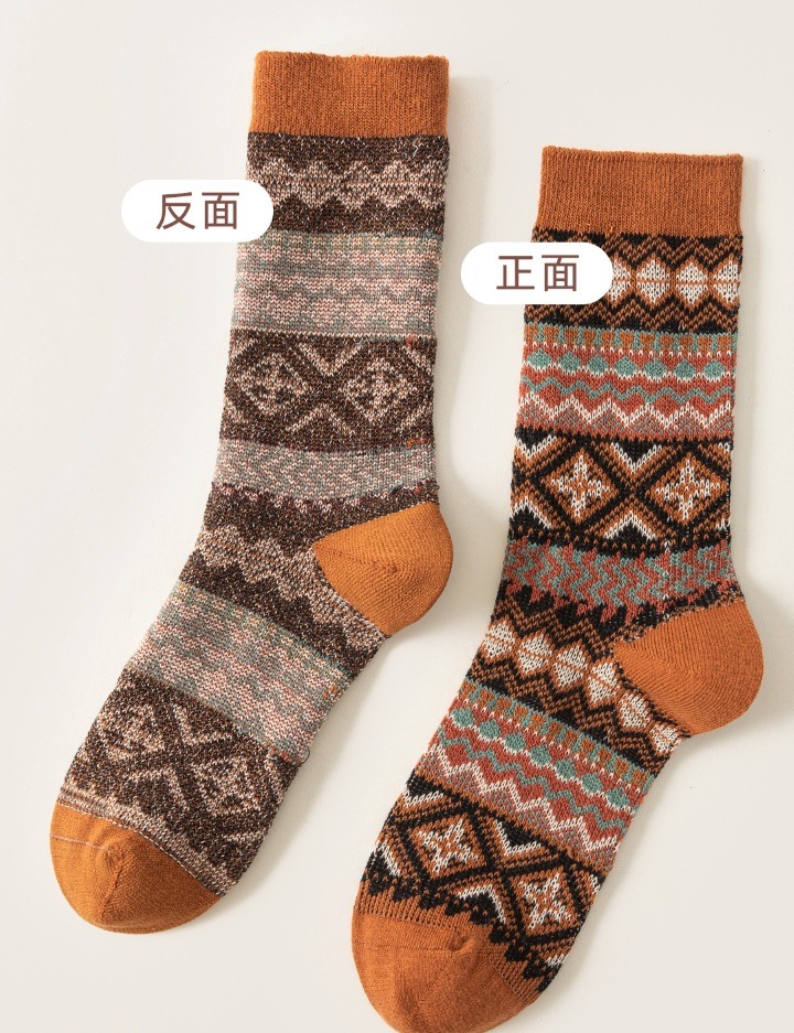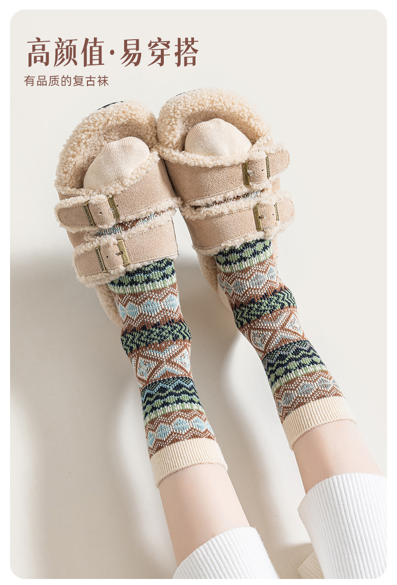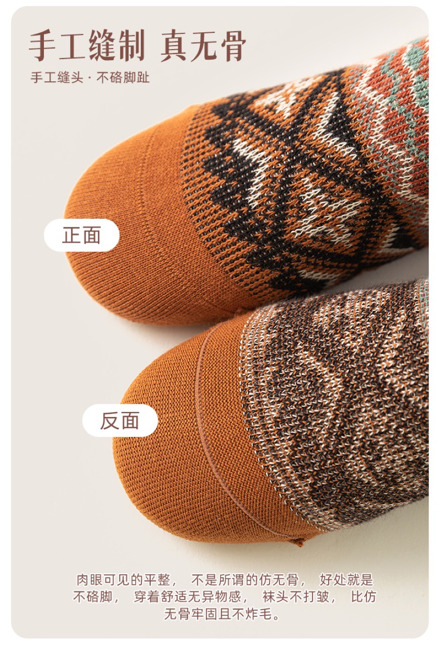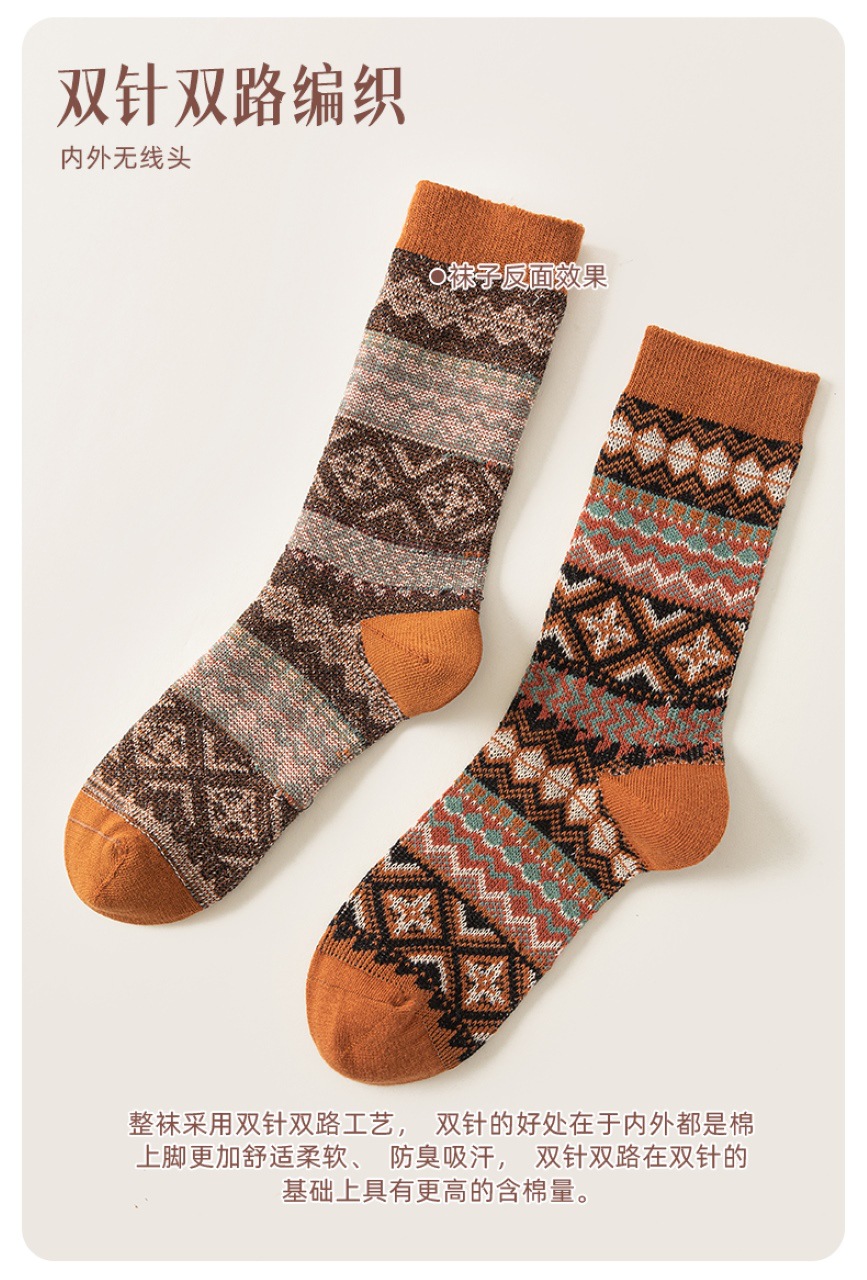 양말 파크 가을 겨울 여성용 이중 바늘 양방향 종아리 중간 양말 영국 스타일 민족 스타일 뼈없는 손으로 꿰맨 복고풍