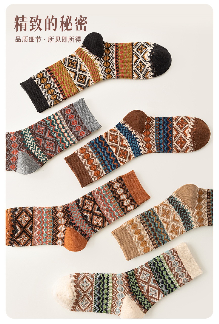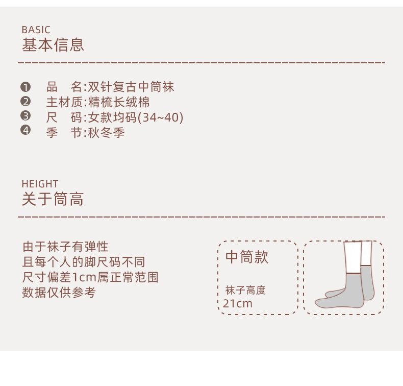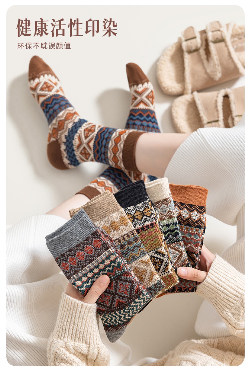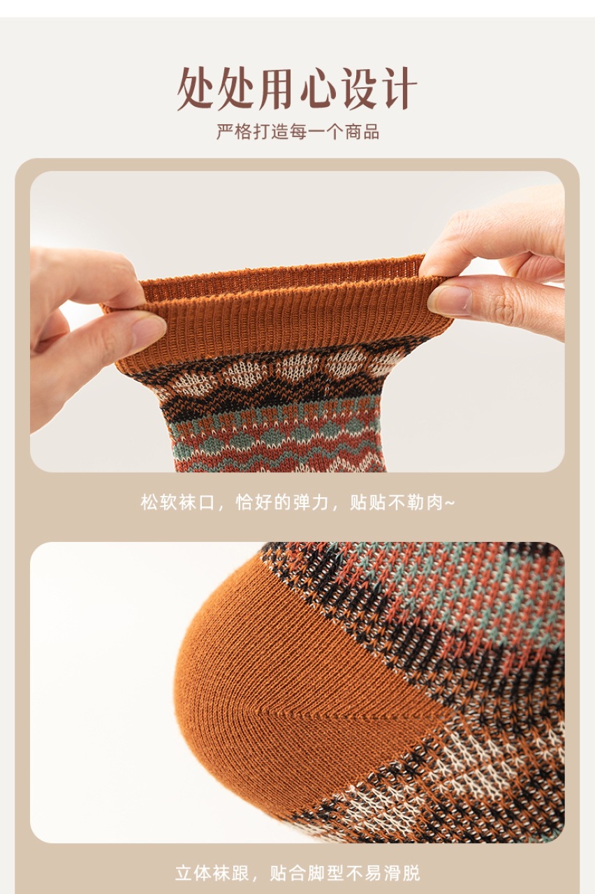 양말 파크 가을 겨울 여성용 이중 바늘 양방향 종아리 중간 양말 영국 스타일 민족 스타일 뼈없는 손으로 꿰맨 복고풍