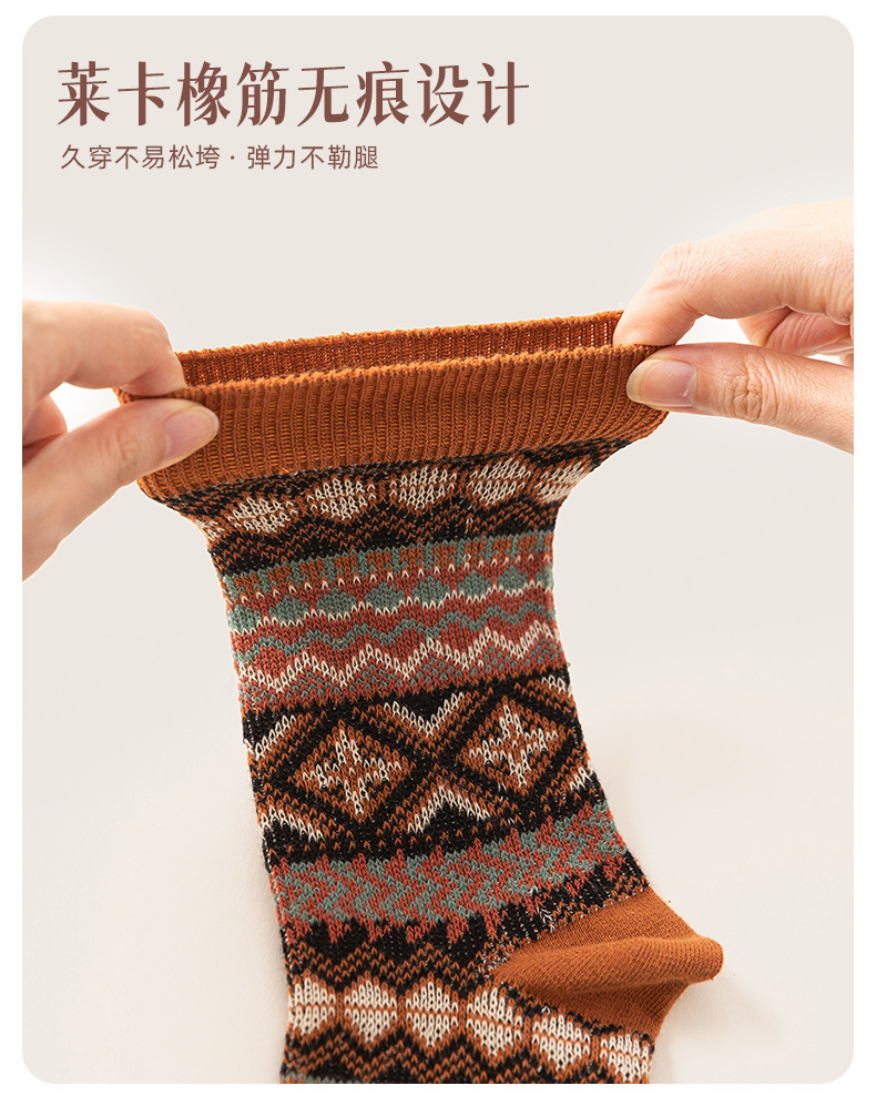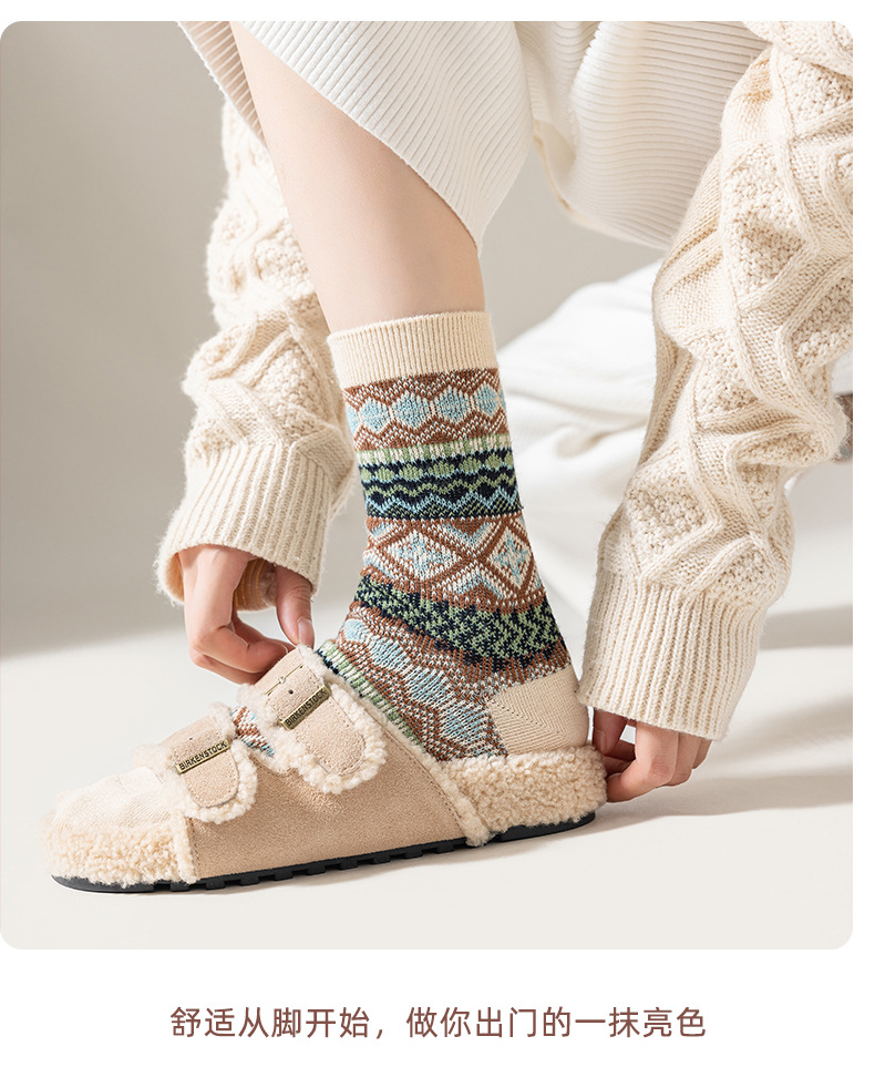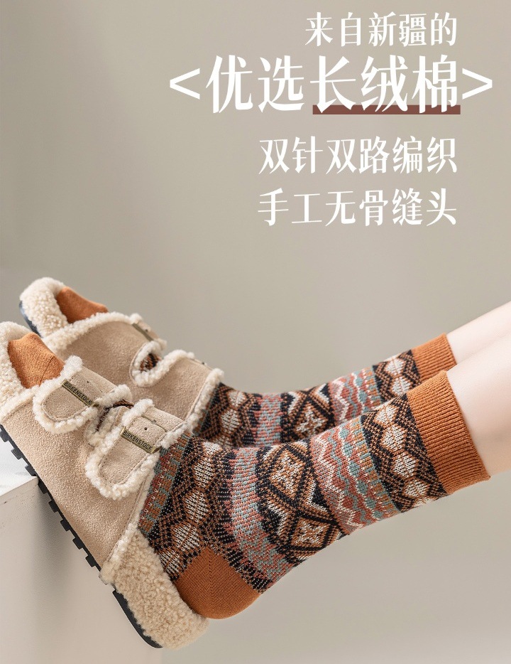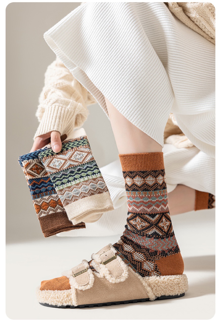 양말 파크 가을 겨울 여성용 이중 바늘 양방향 종아리 중간 양말 영국 스타일 민족 스타일 뼈없는 손으로 꿰맨 복고풍스토어 가기
