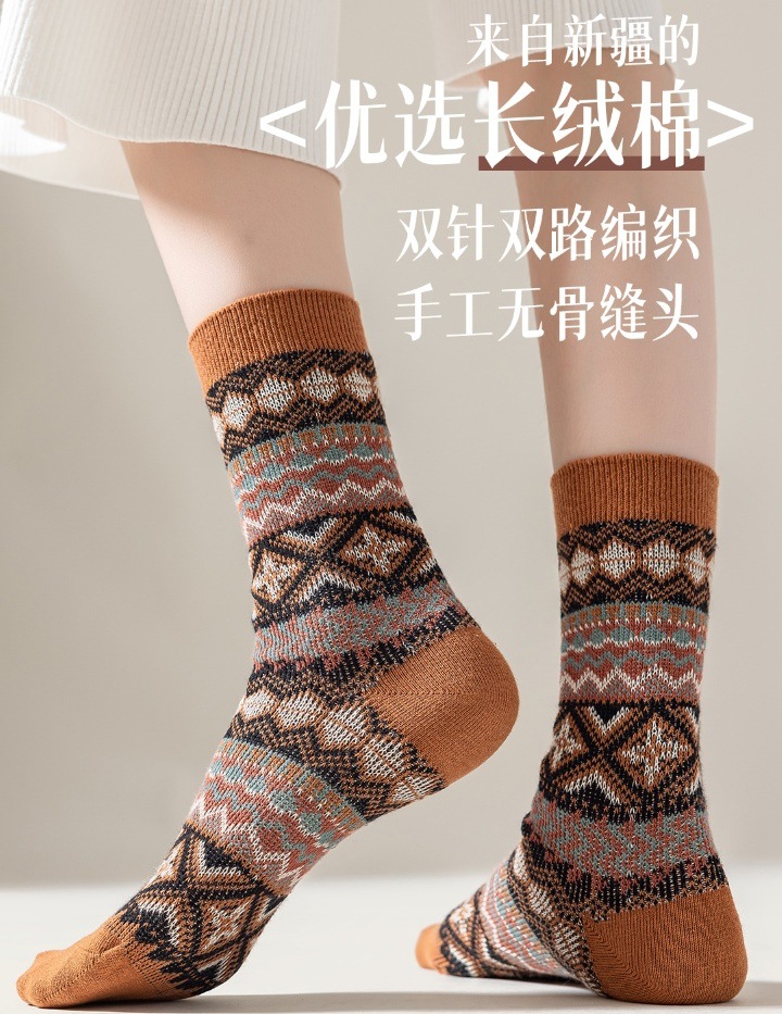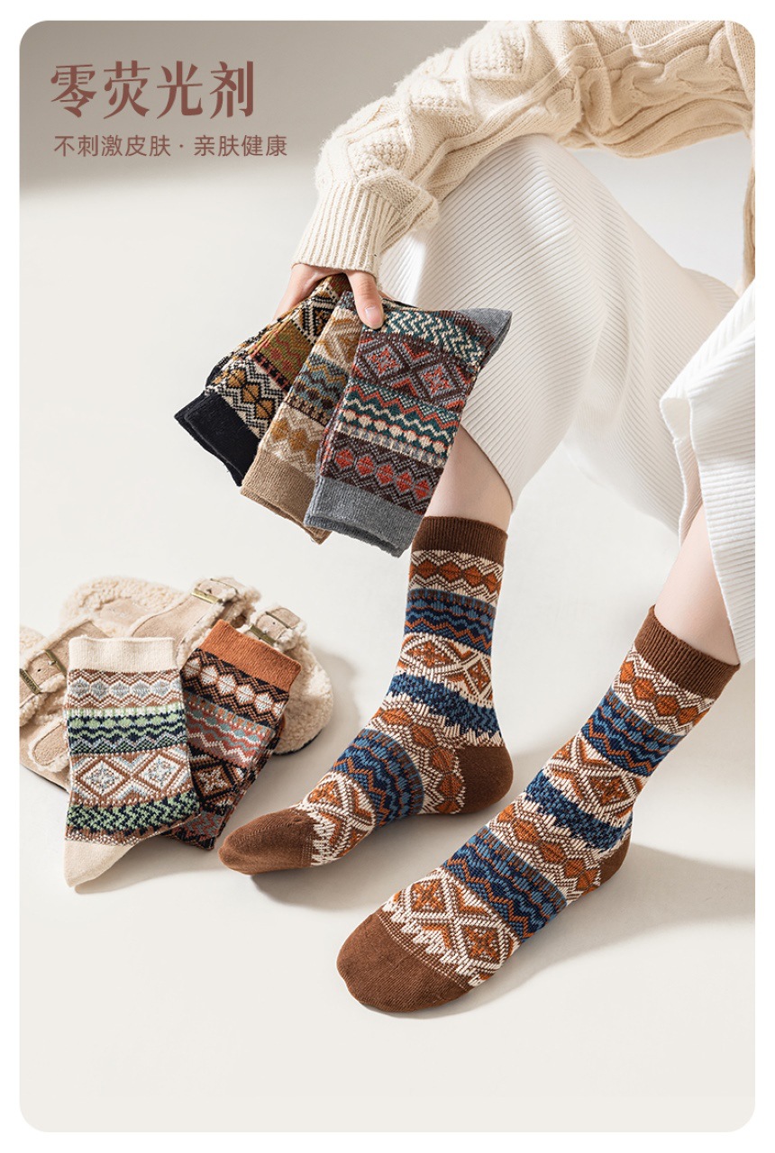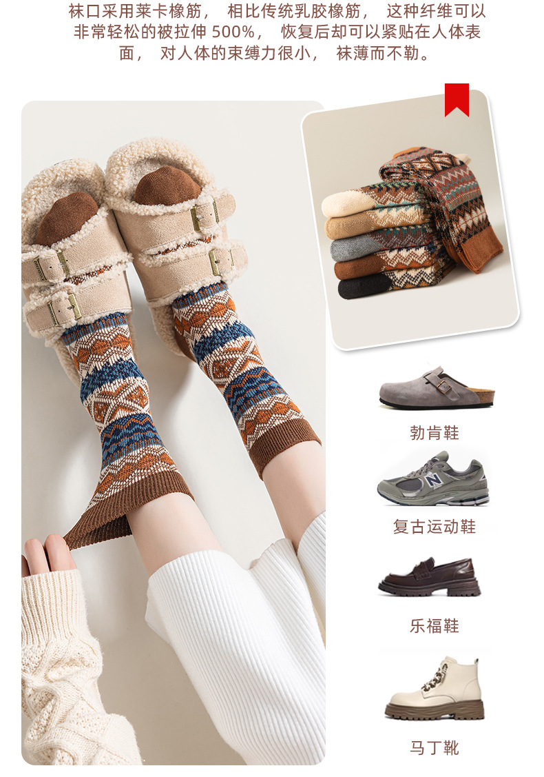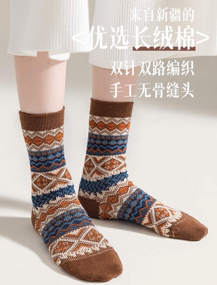 양말 파크 가을 겨울 여성용 이중 바늘 양방향 종아리 중간 양말 영국 스타일 민족 스타일 뼈없는 손으로 꿰맨 복고풍스토어 가기
