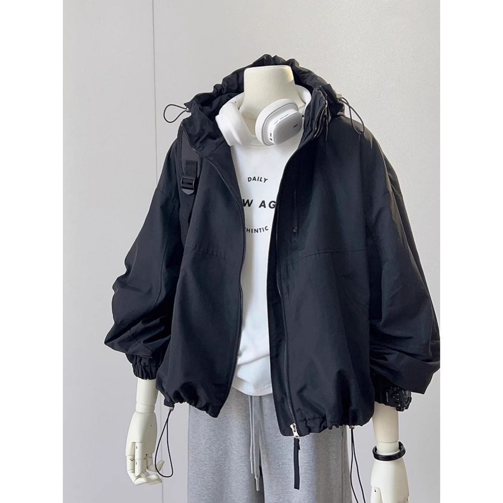 블랙 드로우 스트링 후드 재킷 여성의 가을 디자인 센스 우아한 루즈 슬림 프록 탑스토어 가기