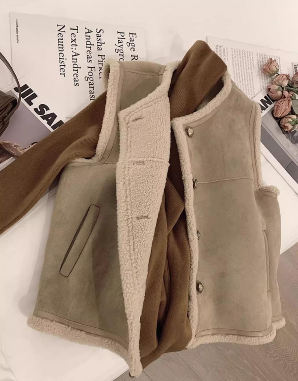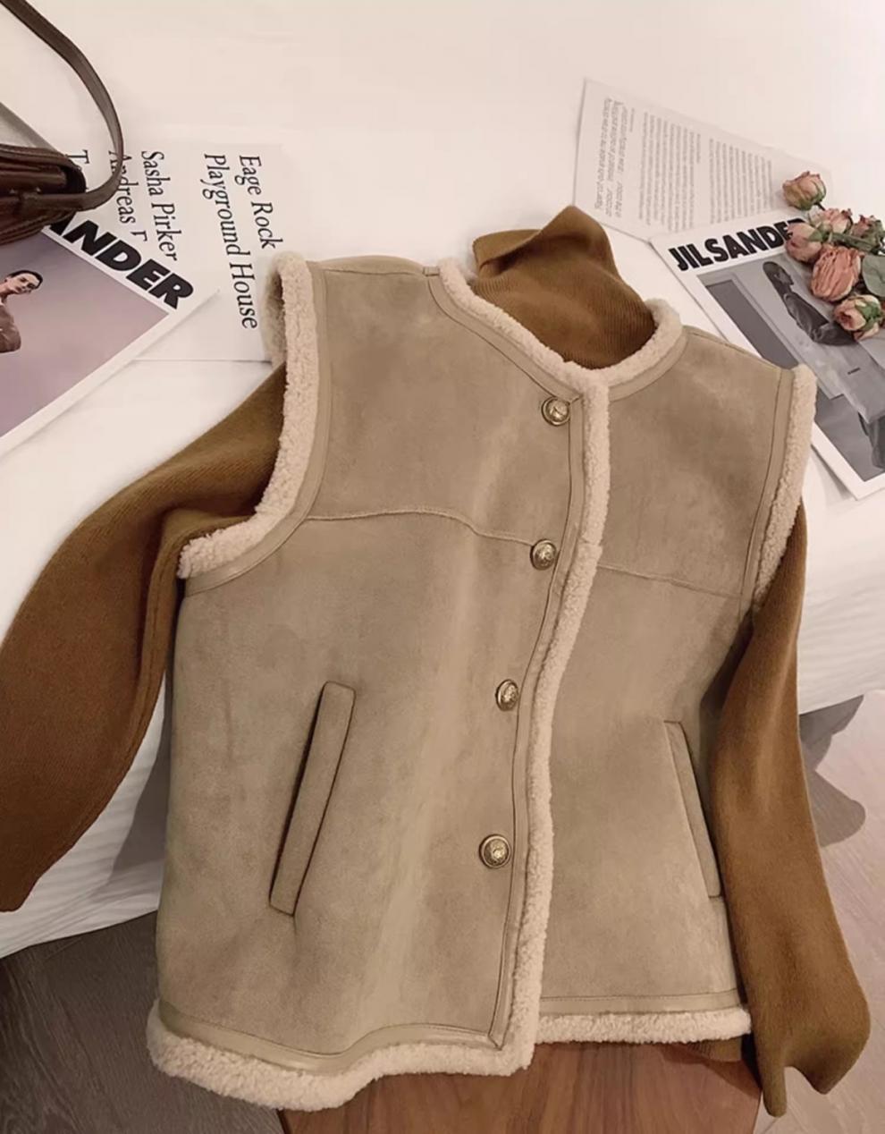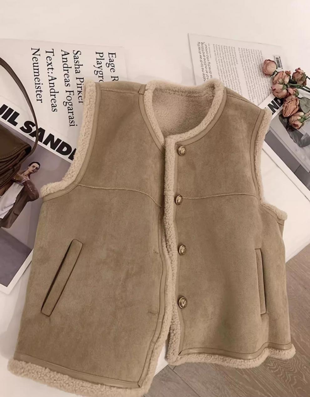 쌀 살구색 양모 조끼 여자 가을과 겨울 새로운 한국 스타일 유행 올매치 양모 조끼 재킷스토어 가기