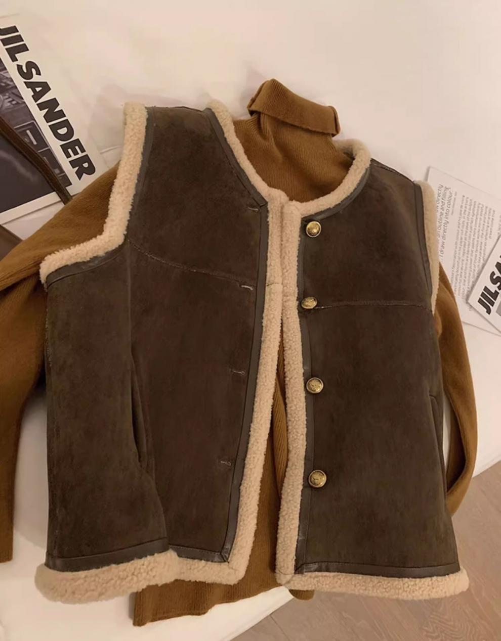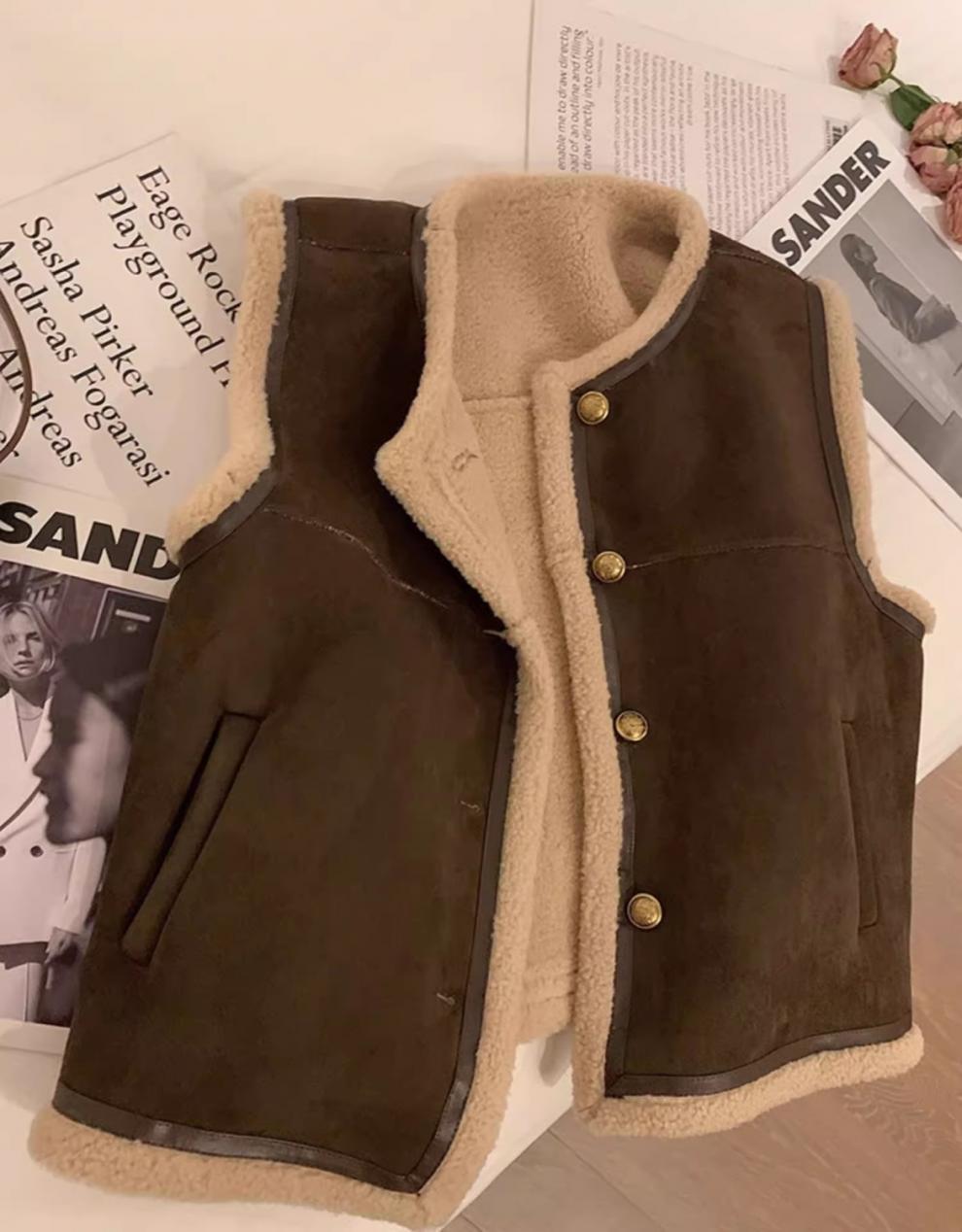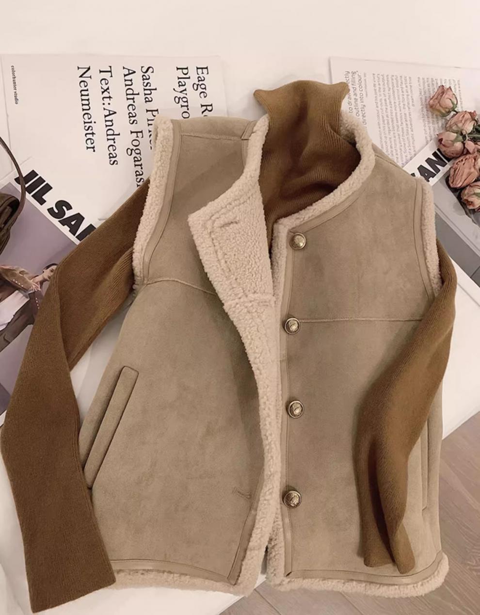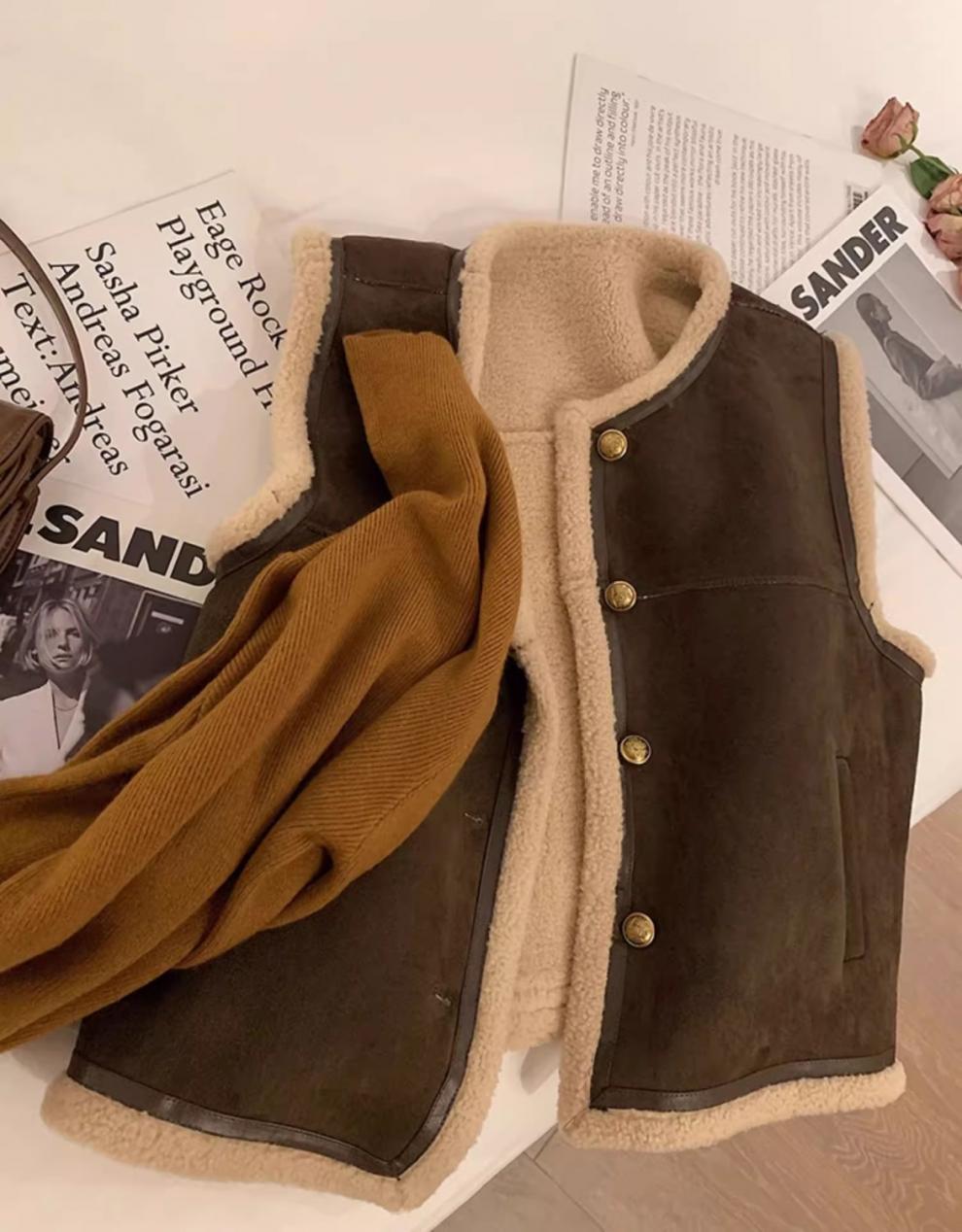 쌀 살구색 양모 조끼 여자 가을과 겨울 새로운 한국 스타일 유행 올매치 양모 조끼 재킷스토어 가기