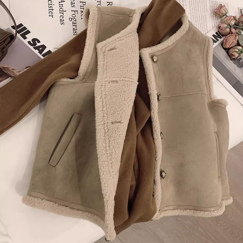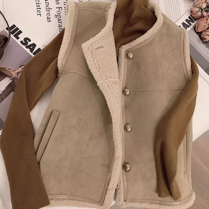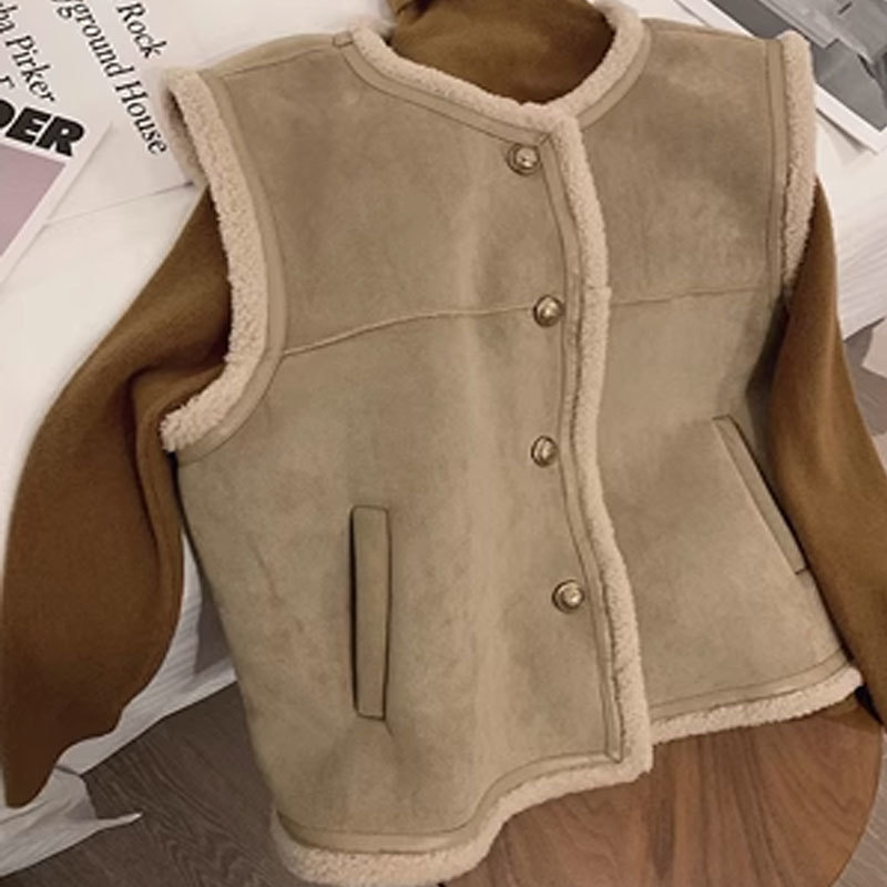 쌀 살구색 양모 조끼 여자 가을과 겨울 새로운 한국 스타일 유행 올매치 양모 조끼 재킷