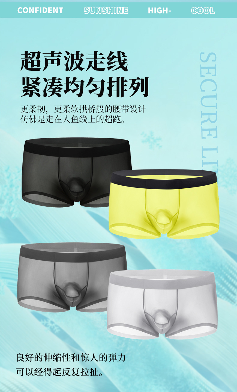 20D 완전 투명 아이스 실크 속옷 남성 총알 분리 포켓 섹시한 복서 여름 얇은 원활한 복서