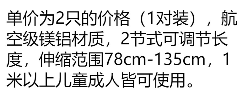성인 및 어린이를위한 일반 장비 전문 스키 스틱 더블 보드 눈덩이 확장 가능한 다기능 알루미늄 합금 워킹 스틱스토어 가기
