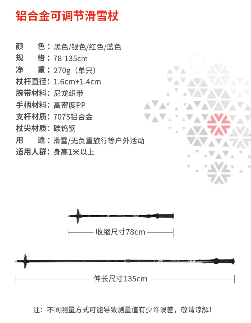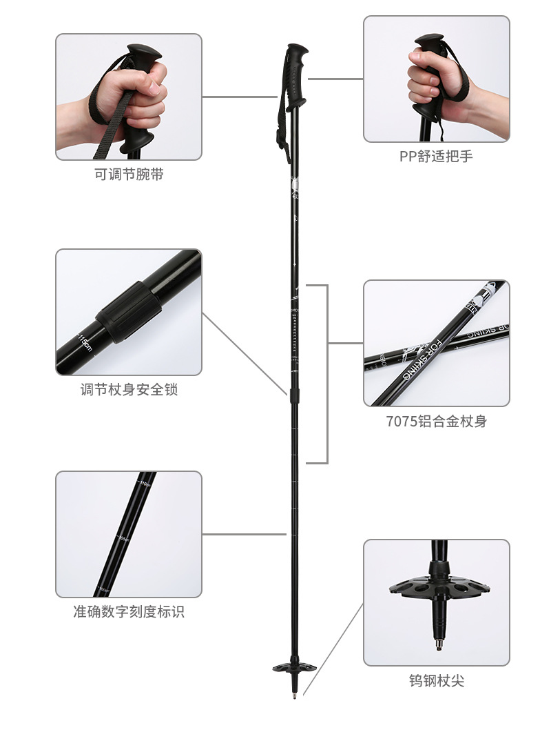 성인 및 어린이를위한 일반 장비 전문 스키 스틱 더블 보드 눈덩이 확장 가능한 다기능 알루미늄 합금 워킹 스틱