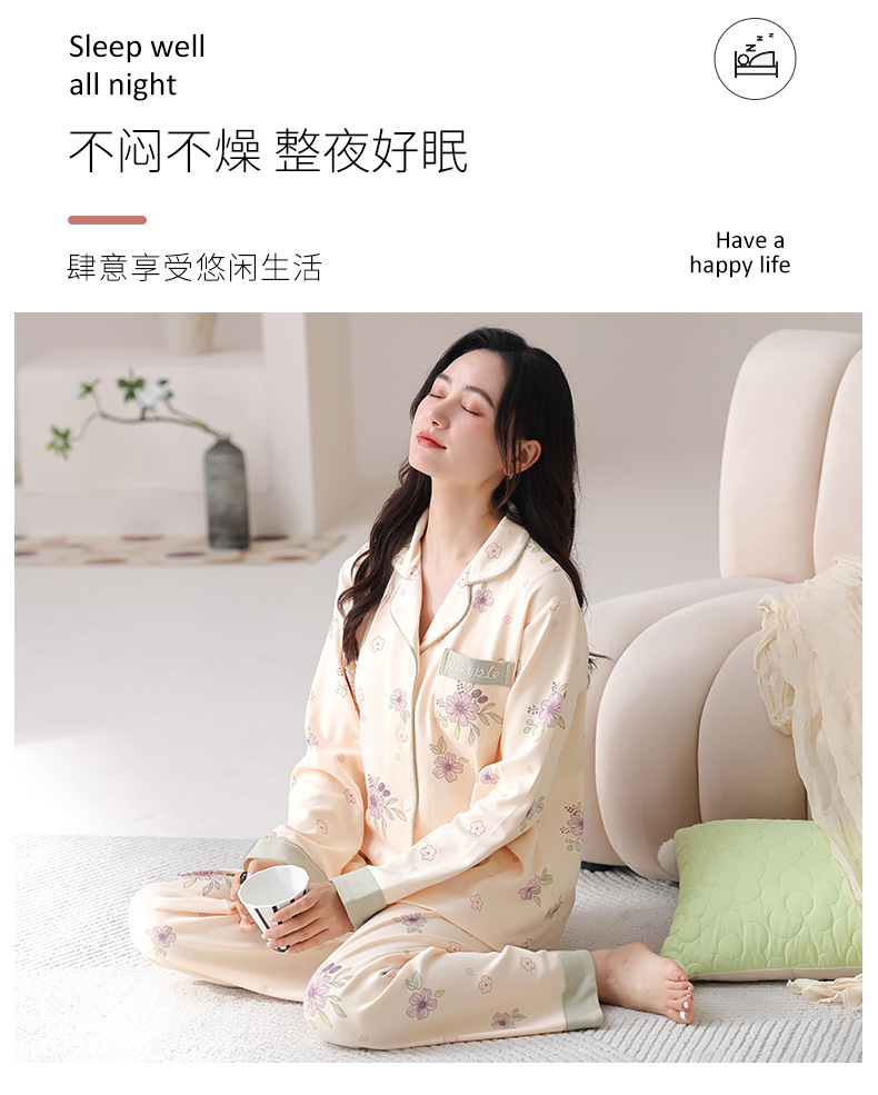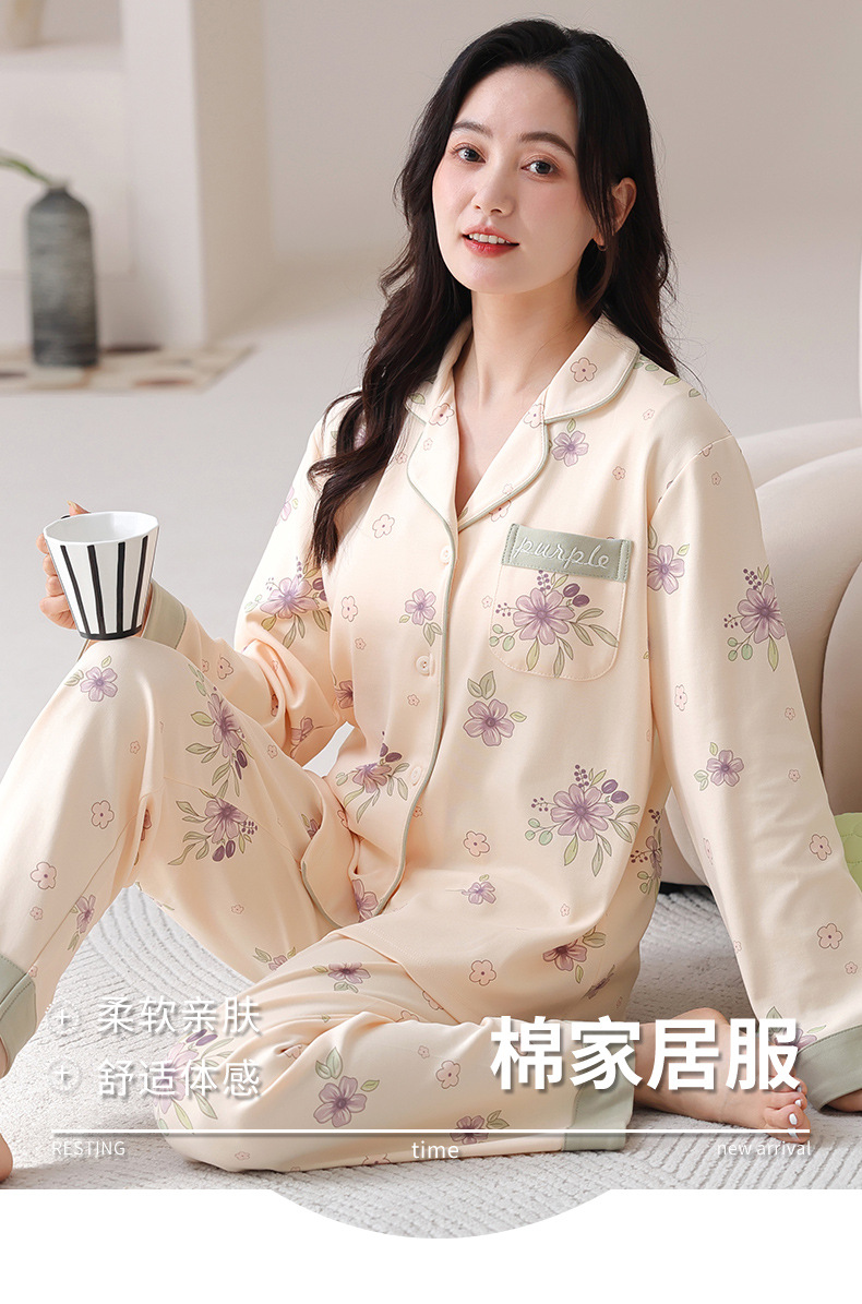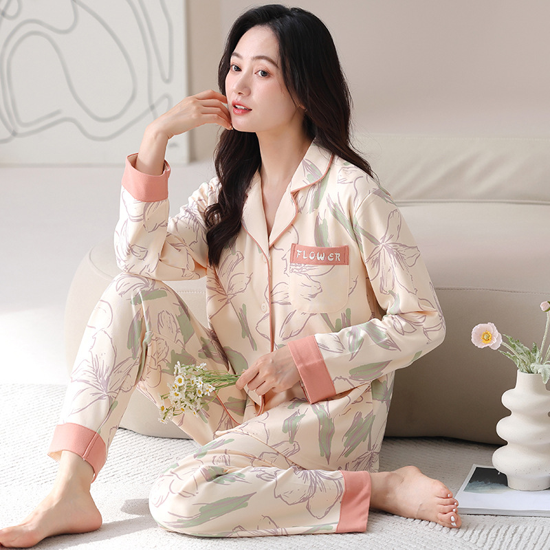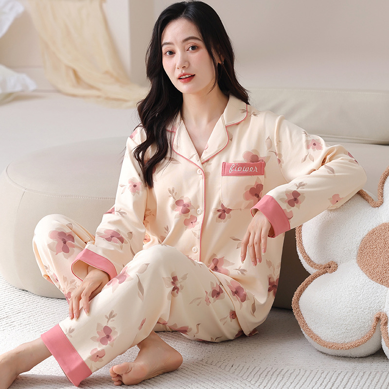 새로운 잠옷 여성의 봄과 가을 카디건 긴팔 바지 세트 느슨한 플러스 사이즈 통기성 의상 소녀의 집 옷스토어 가기