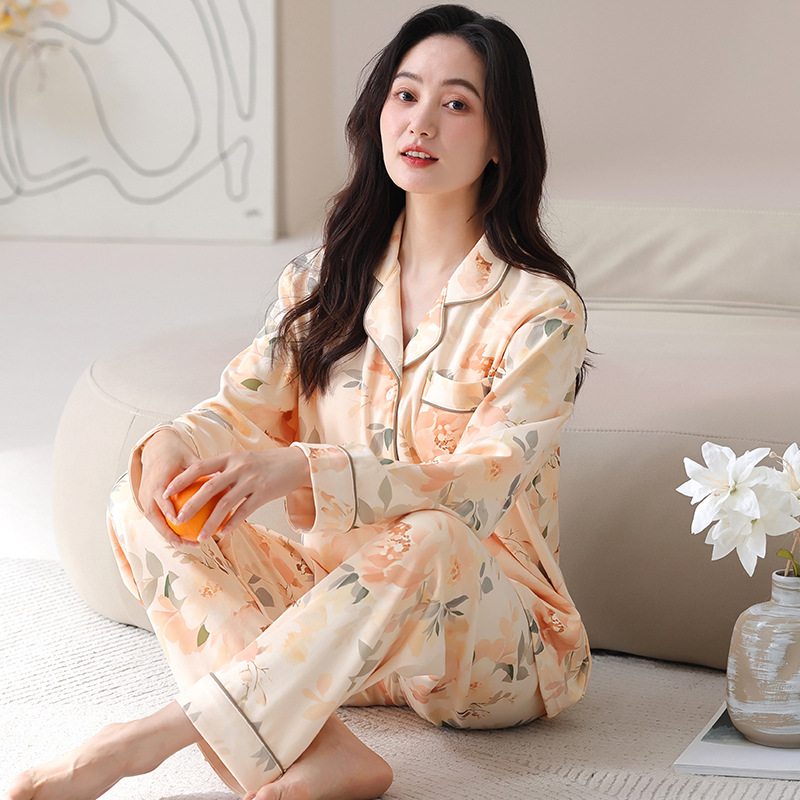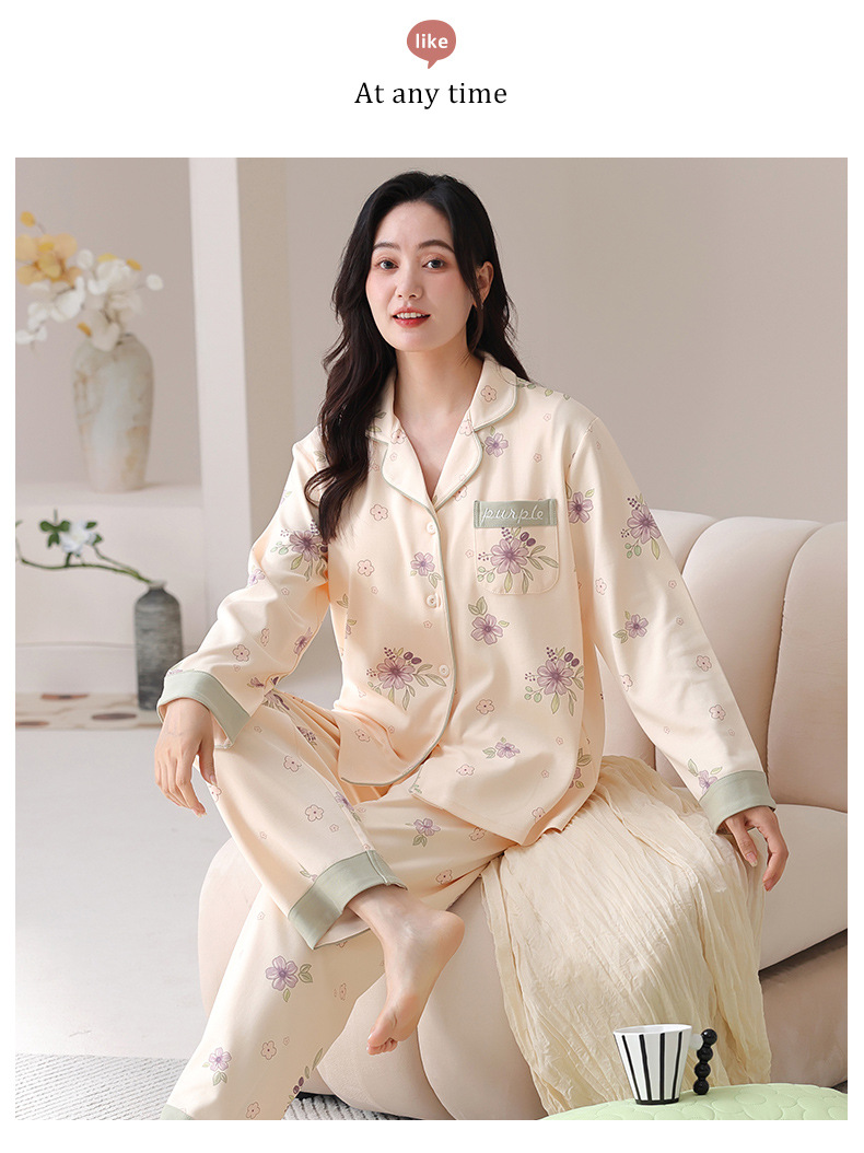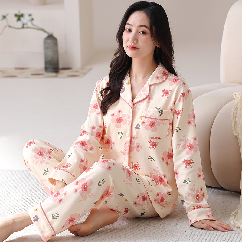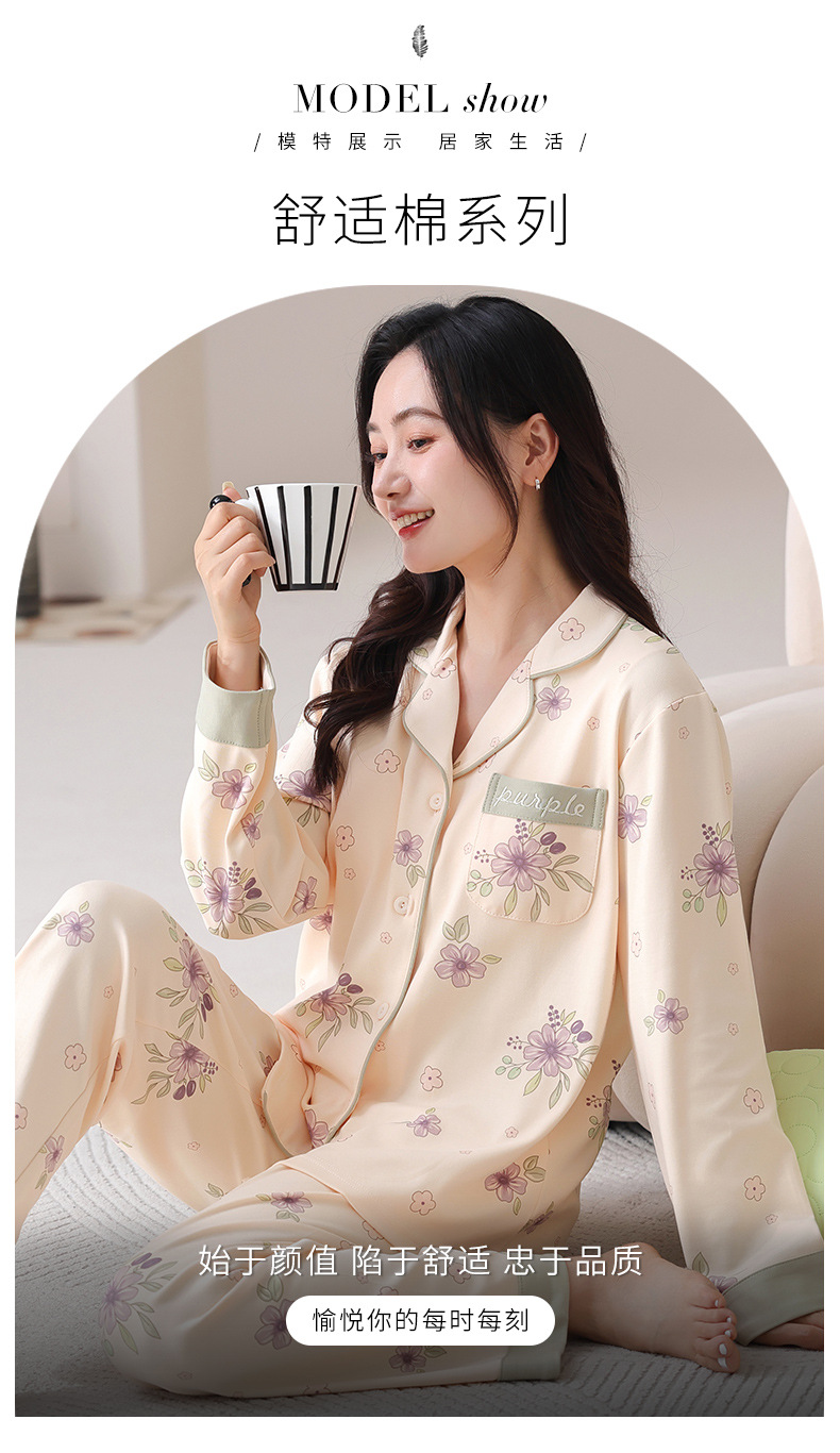 새로운 잠옷 여성의 봄과 가을 카디건 긴팔 바지 세트 느슨한 플러스 사이즈 통기성 의상 소녀의 집 옷스토어 가기