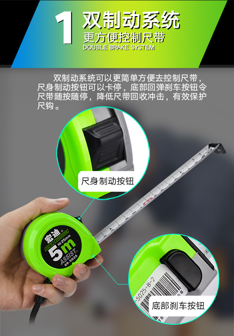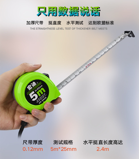 Hongdi 69 새로운 5m 정밀도 확장 및 두꺼운 목공 줄자 강철 3.1m 상자 무료 배송 7.5m 대외 무역스토어 가기