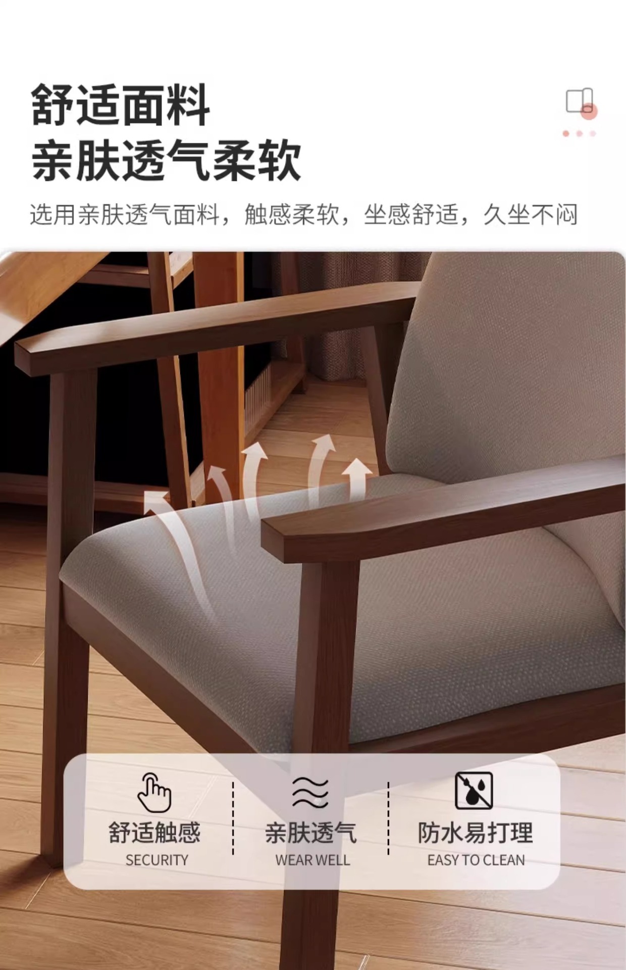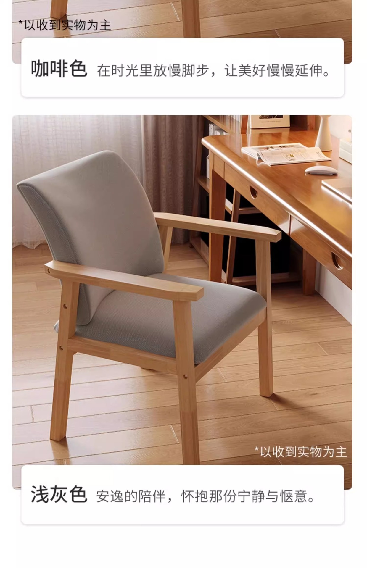 • 우드 컬러 프레임 + 라이트 그레이 천 (넓은 안락의자)