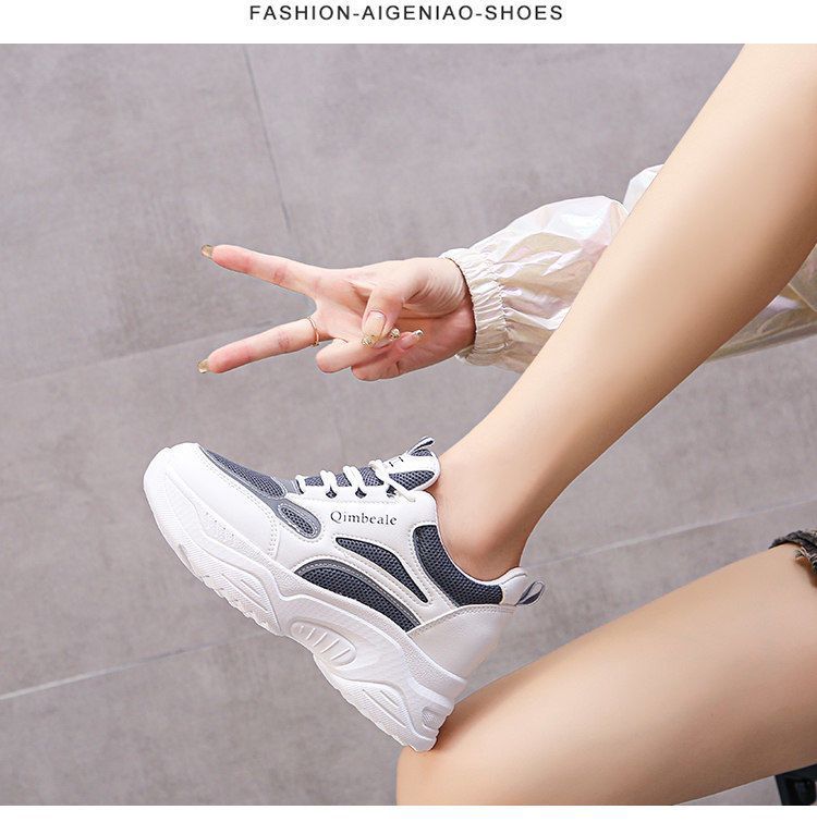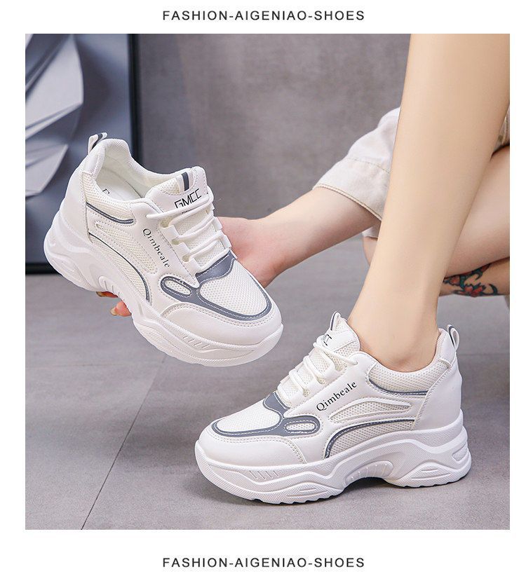 봄과 여름 새로운 여성 신발 두꺼운 밑창 학생 메쉬 유행 통기성 레이스 업 화이트 신발 실행 등산 싱글 샌들스토어 가기