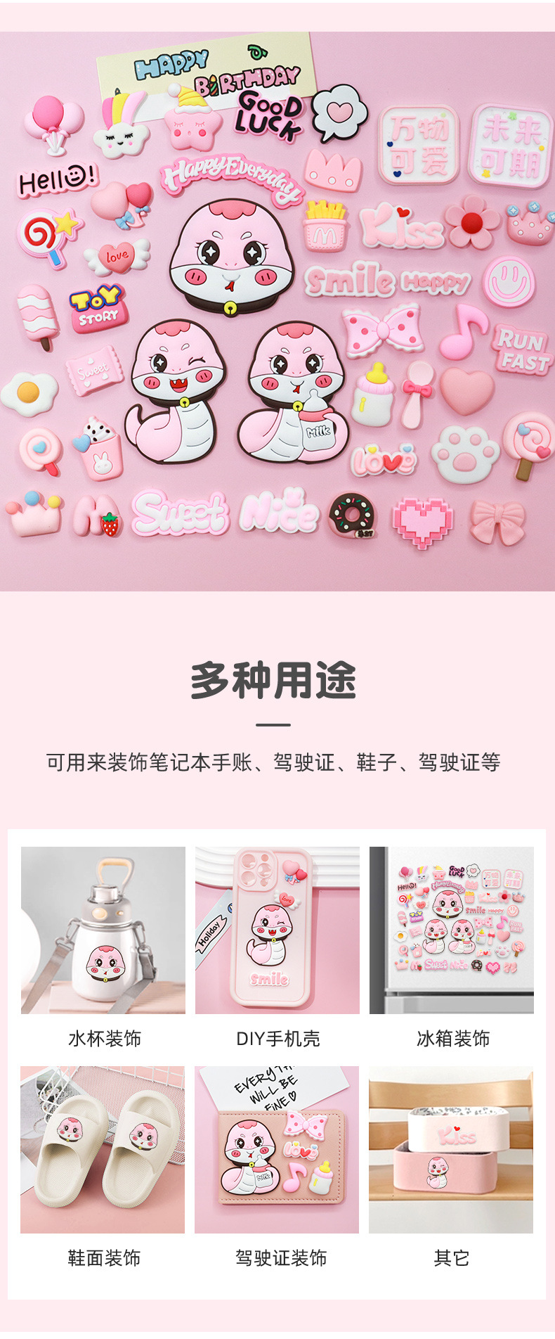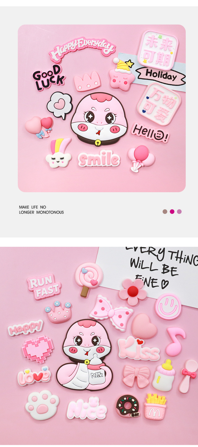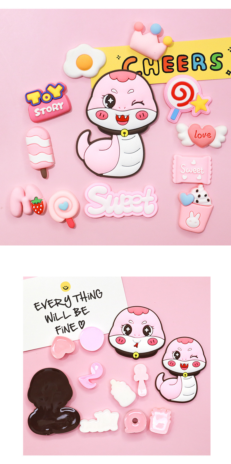 만화 조디악 뱀 아기 핑크 뱀 출생 증명서 세트 DIY 액세서리 평면 패널 보호 커버 장식 패치스토어 가기