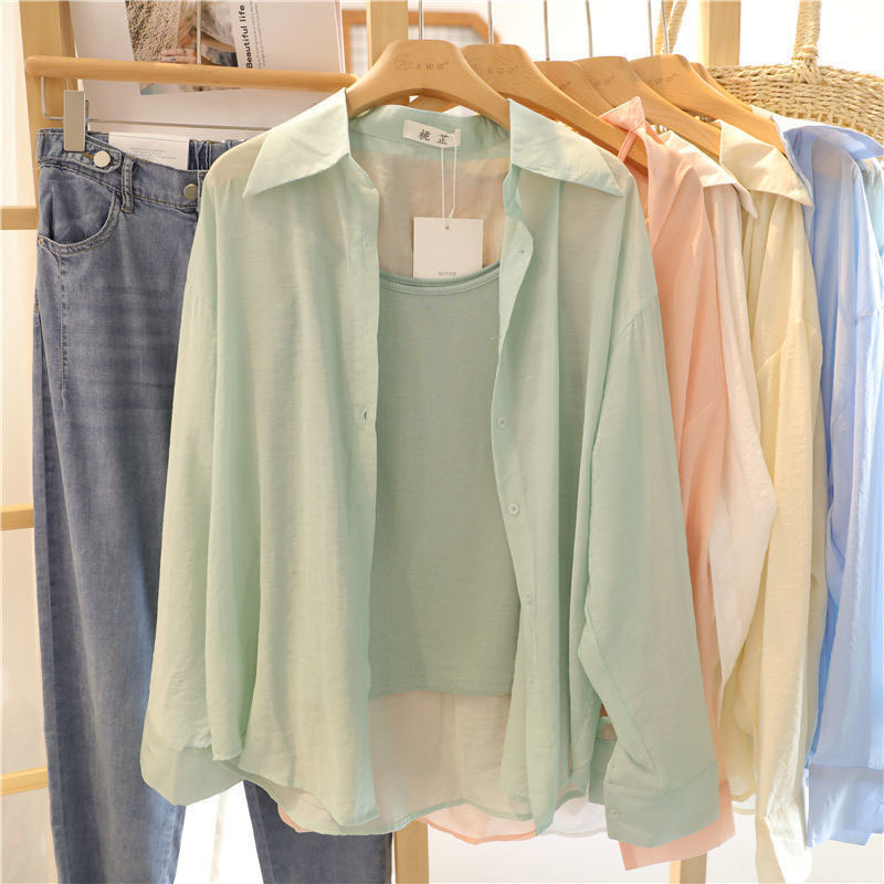 봄과 여름 2023 새로운 간단한 올매치 느슨한 얇은 선 스크린 셔츠 여성용 선 스크린 의류 세련된 경량 셔츠 코트 트렌디