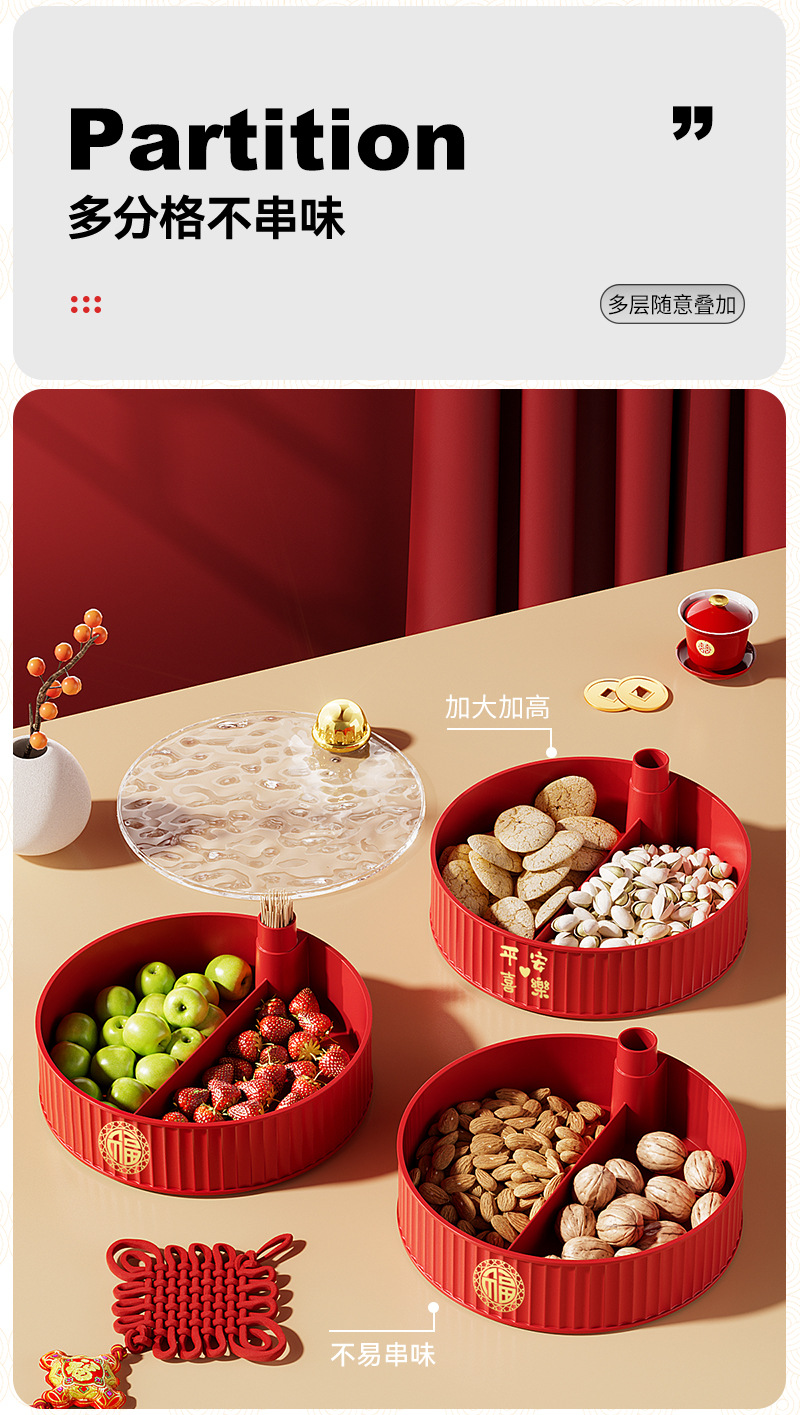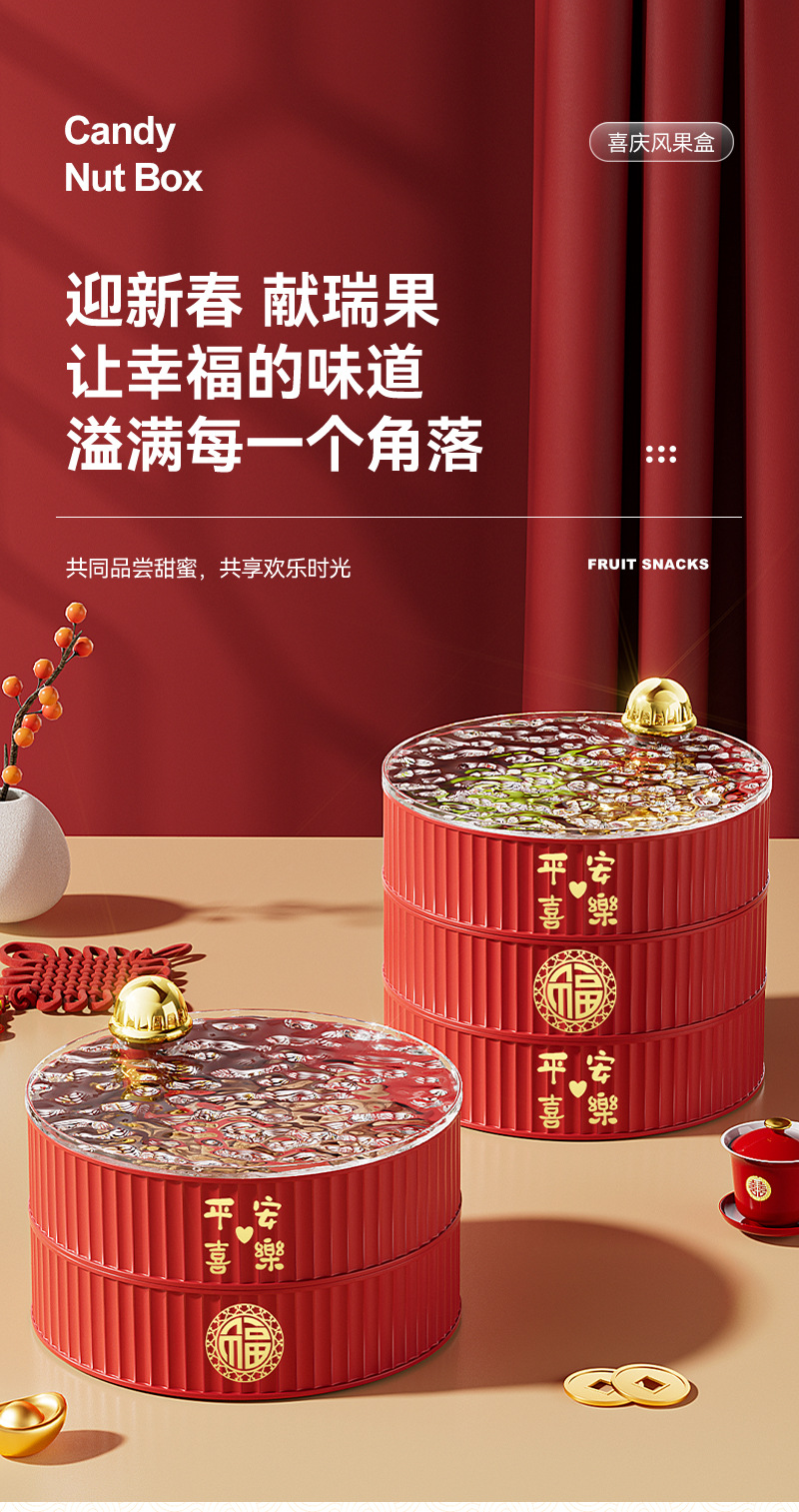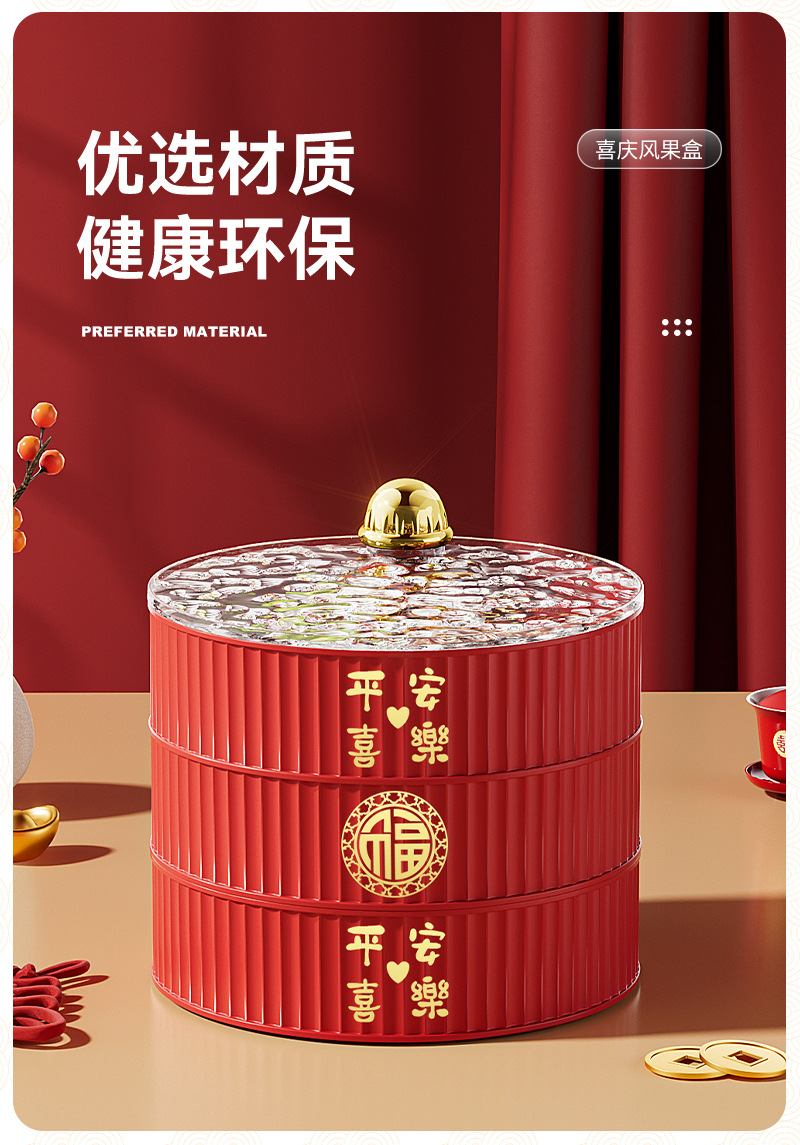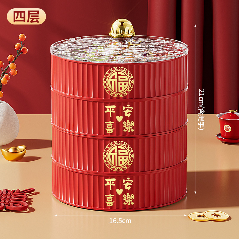 다층 건조 새해 과일 플레이트 과일 바구니 거실 하이 엔드 중국 축제 스낵 보관 상자 PP 빈티지 캔디 박스 도매스토어 가기