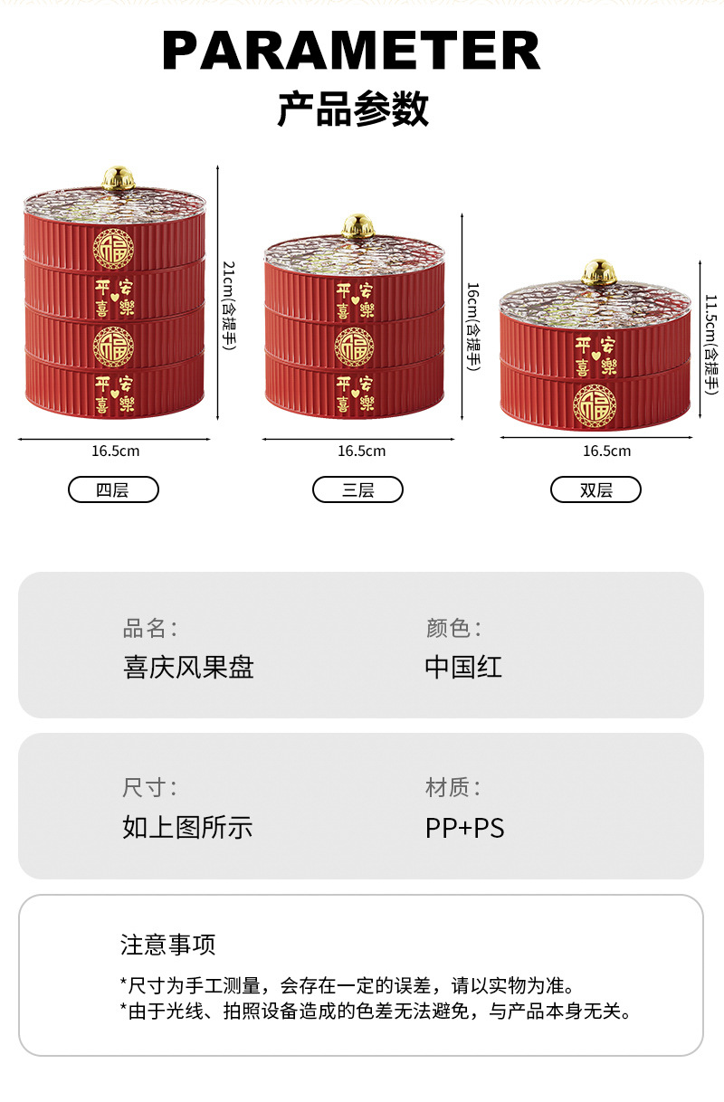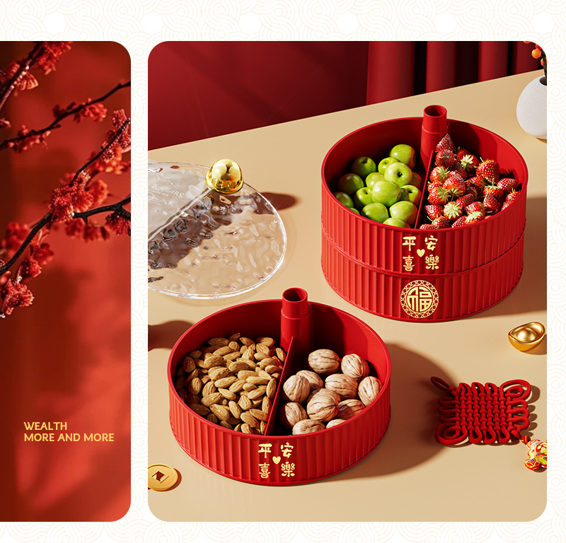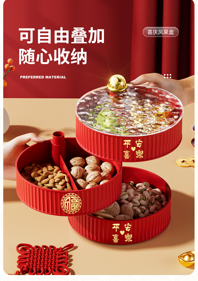 다층 건조 새해 과일 플레이트 과일 바구니 거실 하이 엔드 중국 축제 스낵 보관 상자 PP 빈티지 캔디 박스 도매