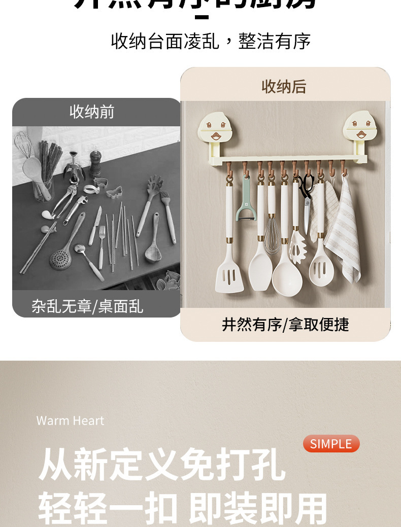 도파민 빨판 주방 후크 랙 홀프리 스푼 슬리퍼 저장 랙 다기능 후크 보관