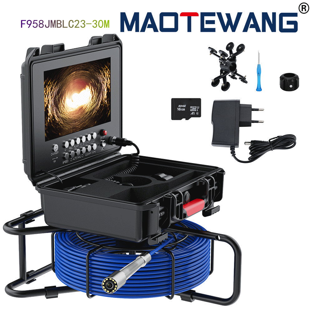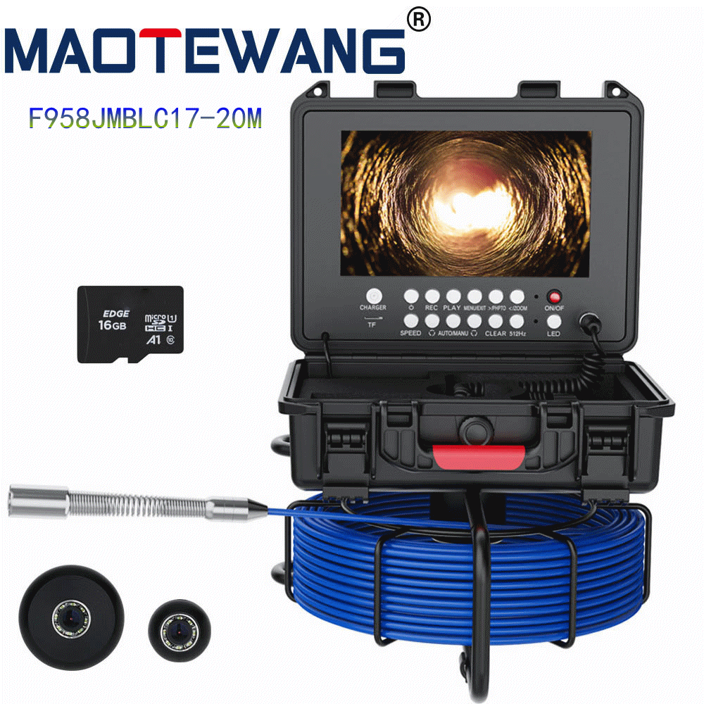 带512发射可定位款:(需要定位器咨询客服另外加收相对应的成本)7寸AHD录像屏,带计米器,摄像机内置512HZ发射自平衡,蓝宝石镜片,直径23mm不锈钢探头,高清1080P,镜头角度145度,20米管道内窥镜,4500MA内置电池,带电量显示,12个白光灯,带摄像头保护套2种,送16G卡。5MM蓝色线缆。 F958JMBLABTX-20M-30m-50M