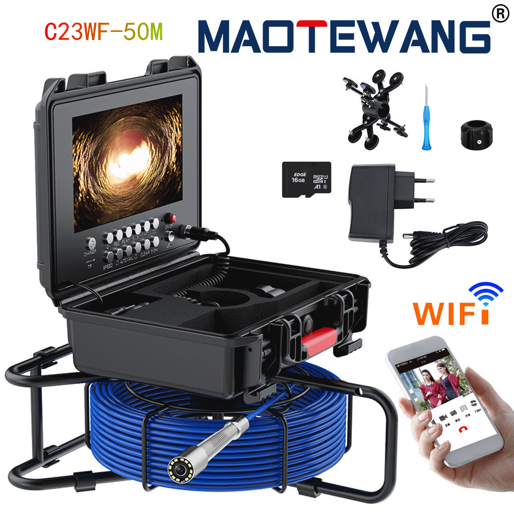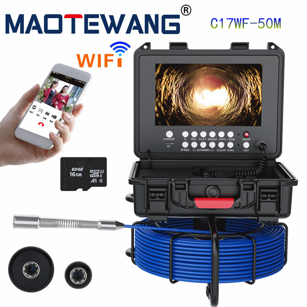 WF远程款:7寸AHD录像屏,带计米器,带WIFI热点功能 支持安卓与苹果系统 距离约80M,直径17mm-23MM不锈钢探头,高清1080P,镜头角度145度,20米管道内窥镜,4500MA内置电池,带电量显示,8个白光灯,带摄像头保护套2种,送16G卡。5MM蓝色线缆。F958JMWFBLC17-20M-30M-50M F958JMWFBL23-20M-30M-50M