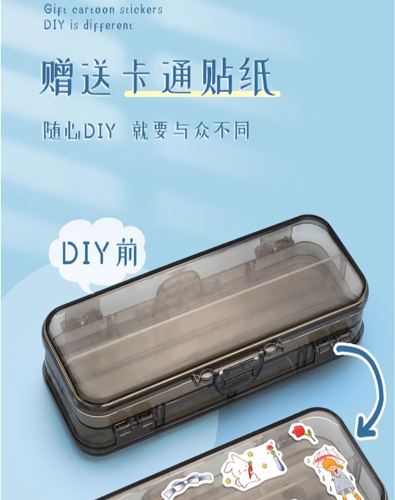 더블 레이어 투명 연필 케이스 간단한 일본 학생 연필 케이스 대용량 저장 상자 문구 상자 도매스토어 가기