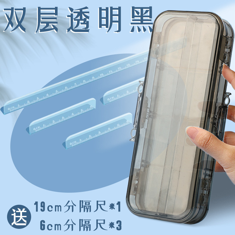 더블 레이어 투명 연필 케이스 간단한 일본 학생 연필 케이스 대용량 저장 상자 문구 상자 도매