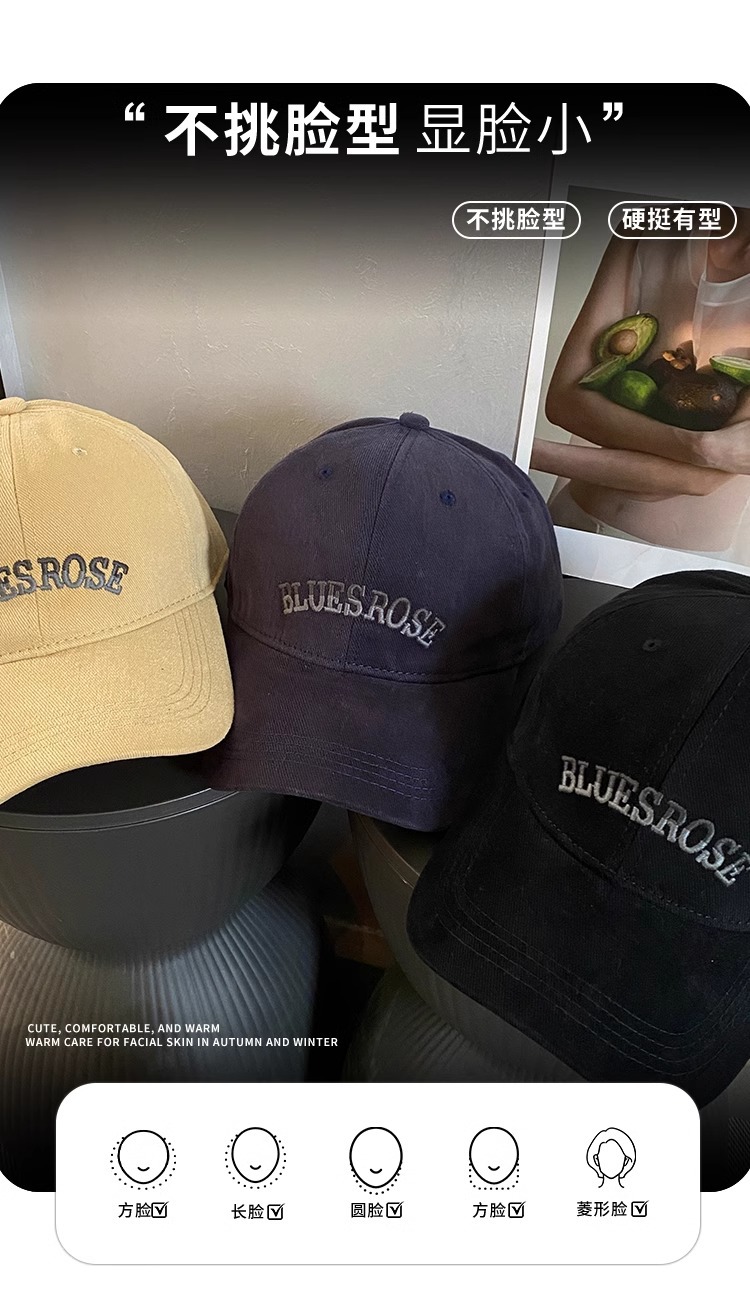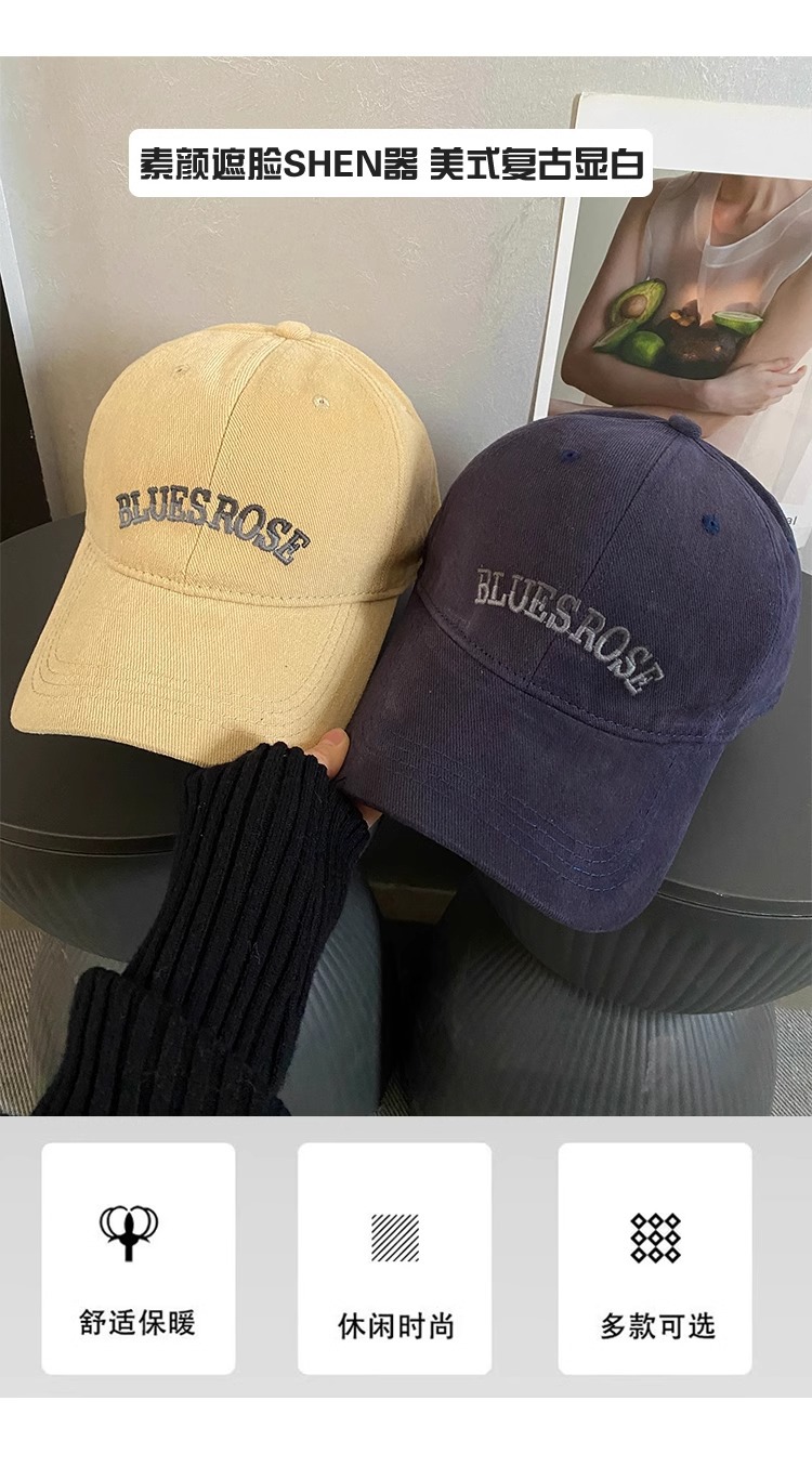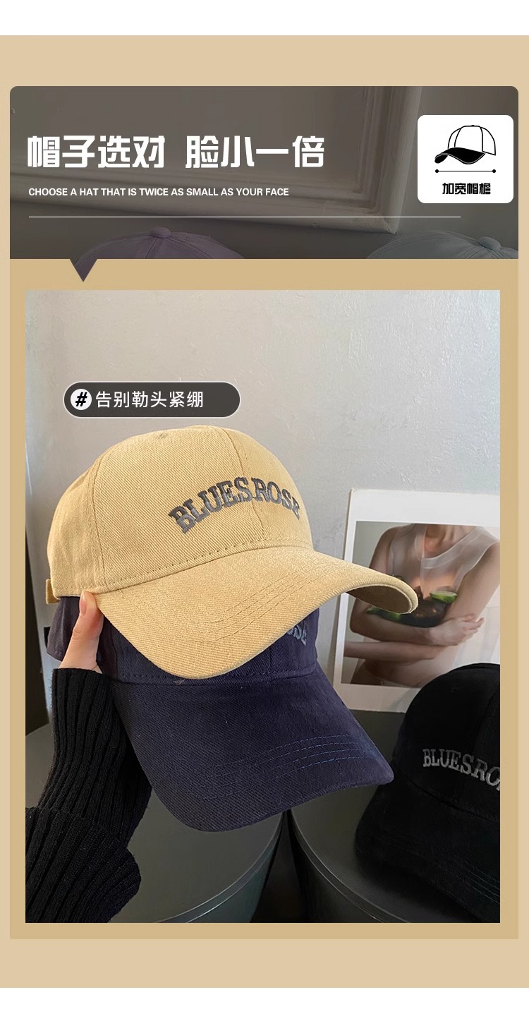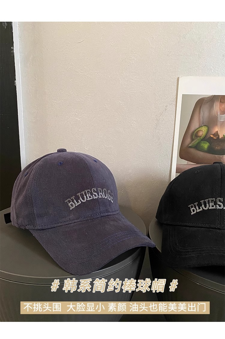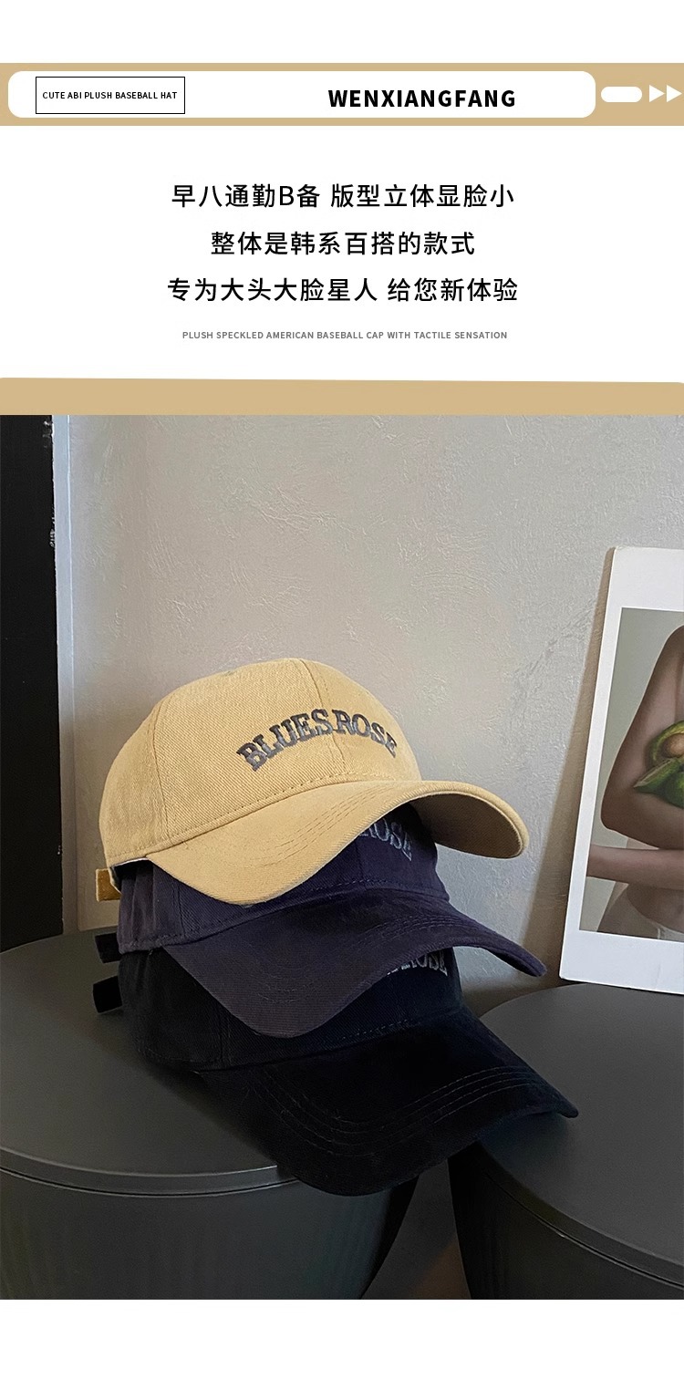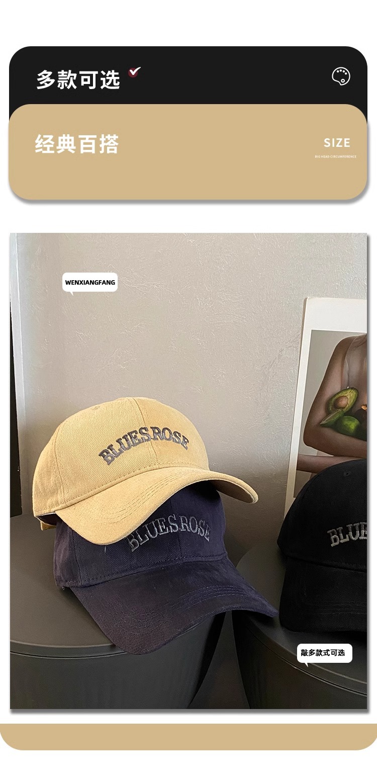 한국 스타일 하드 탑 레터 야구 모자 여자 가을 겨울 2024 새로운 스타일 얼굴-작은 모자 큰 머리 와이드 브림 모자스토어 가기