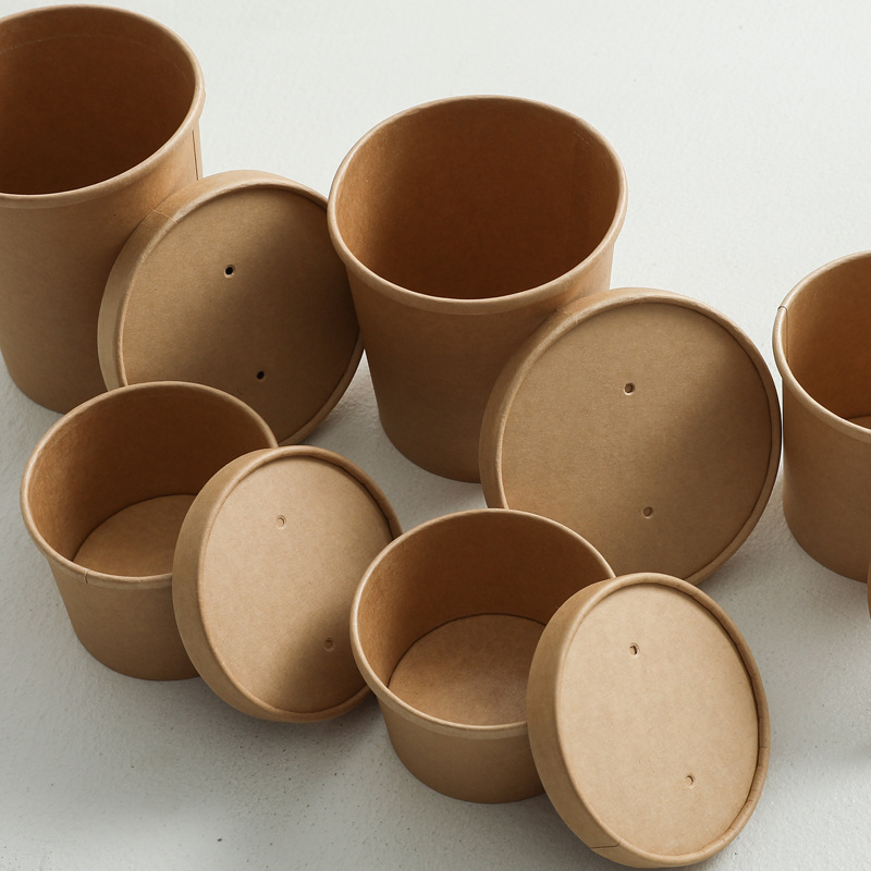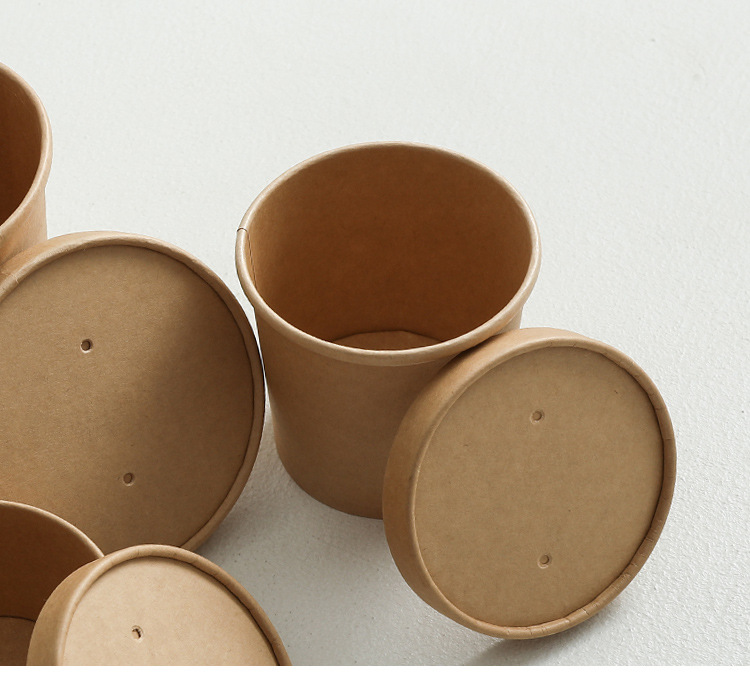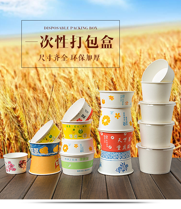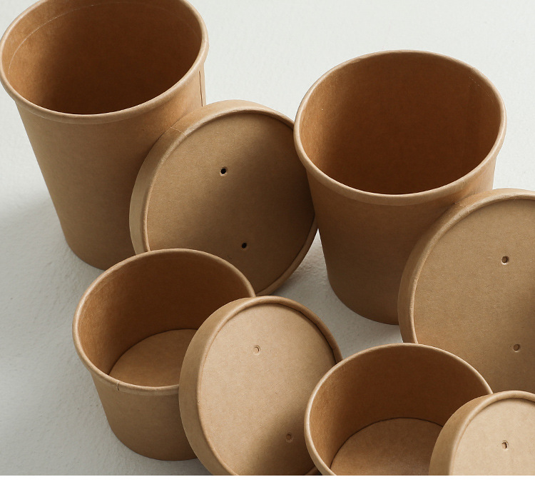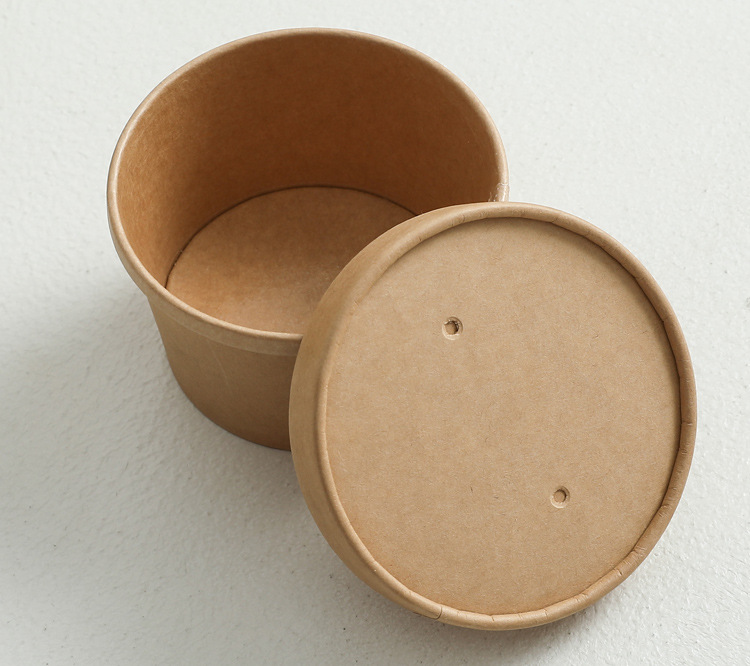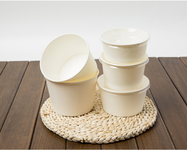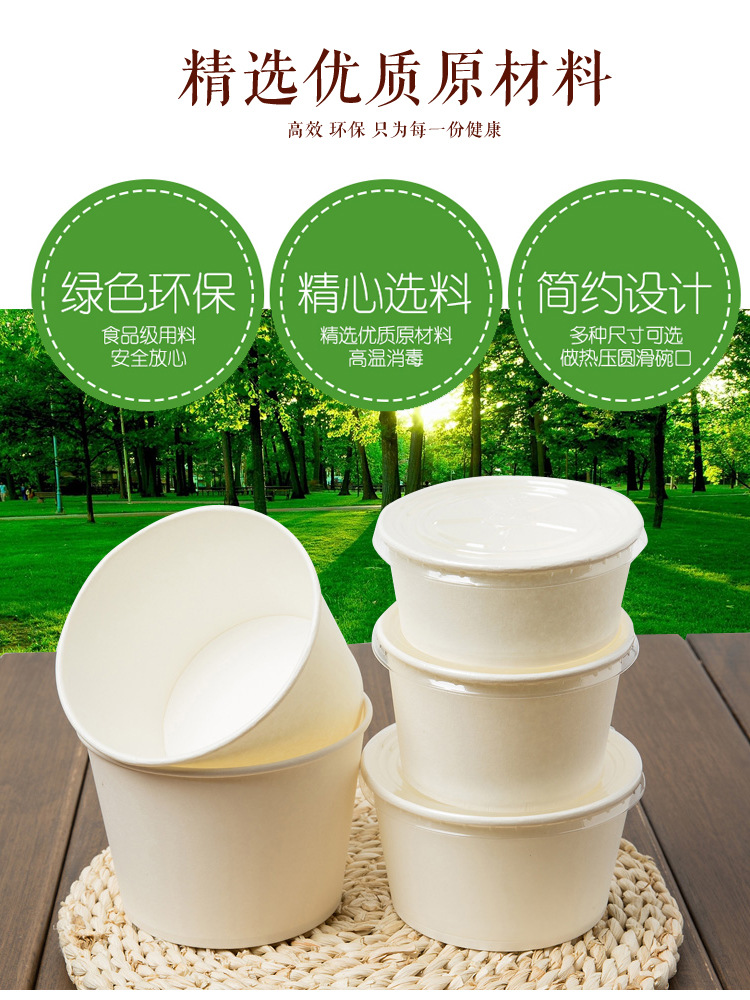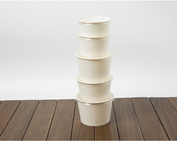 일회용 종이 그릇 라운드 패키지 상자 테이크 아웃 상업용 도시락 차가운 가죽 그릇 얼음 죽 그릇 뚜껑 가정용 종이 도시락 상자