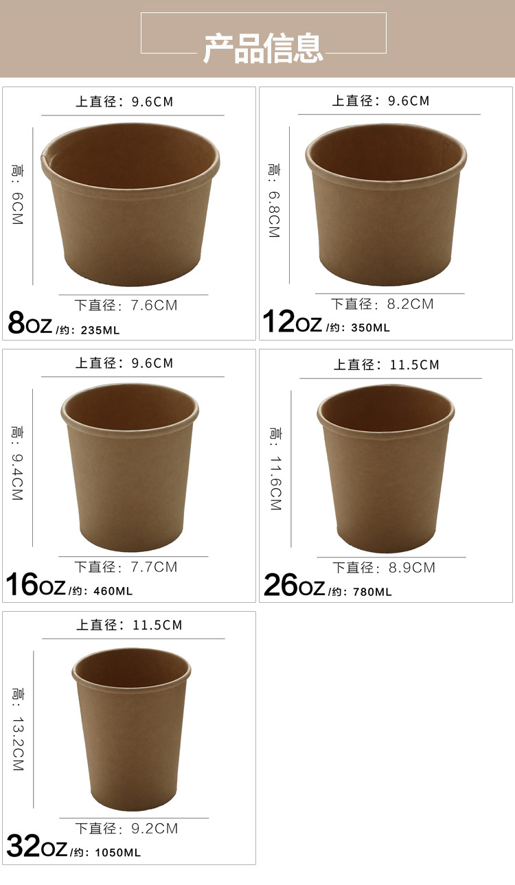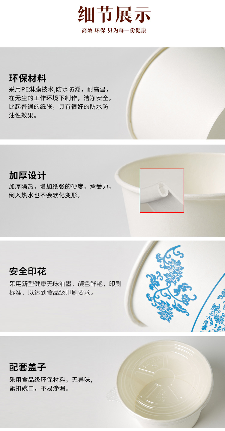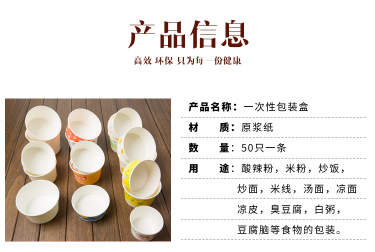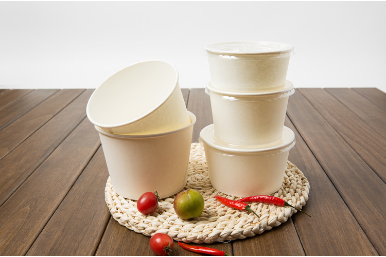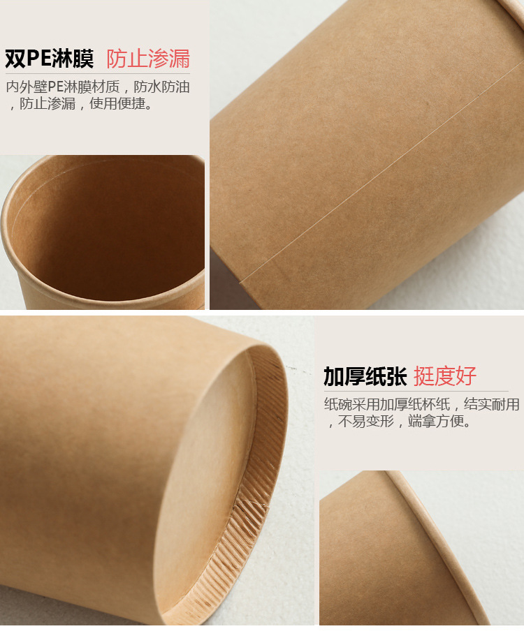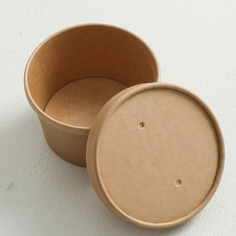 일회용 종이 그릇 라운드 패키지 상자 테이크 아웃 상업용 도시락 차가운 가죽 그릇 얼음 죽 그릇 뚜껑 가정용 종이 도시락 상자