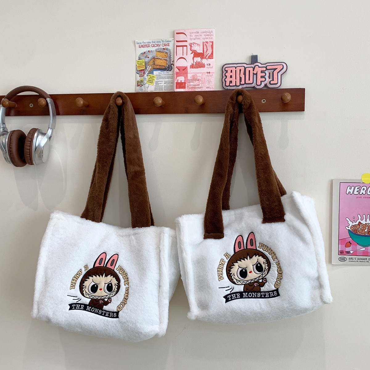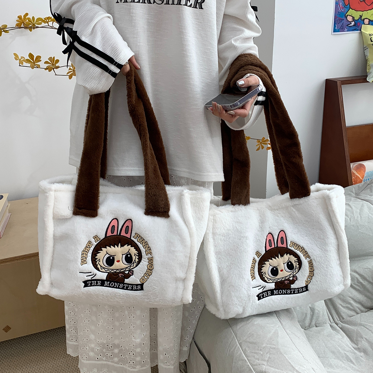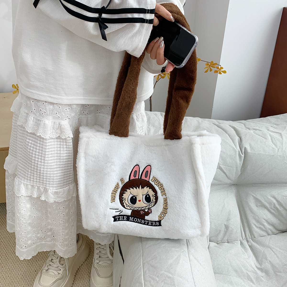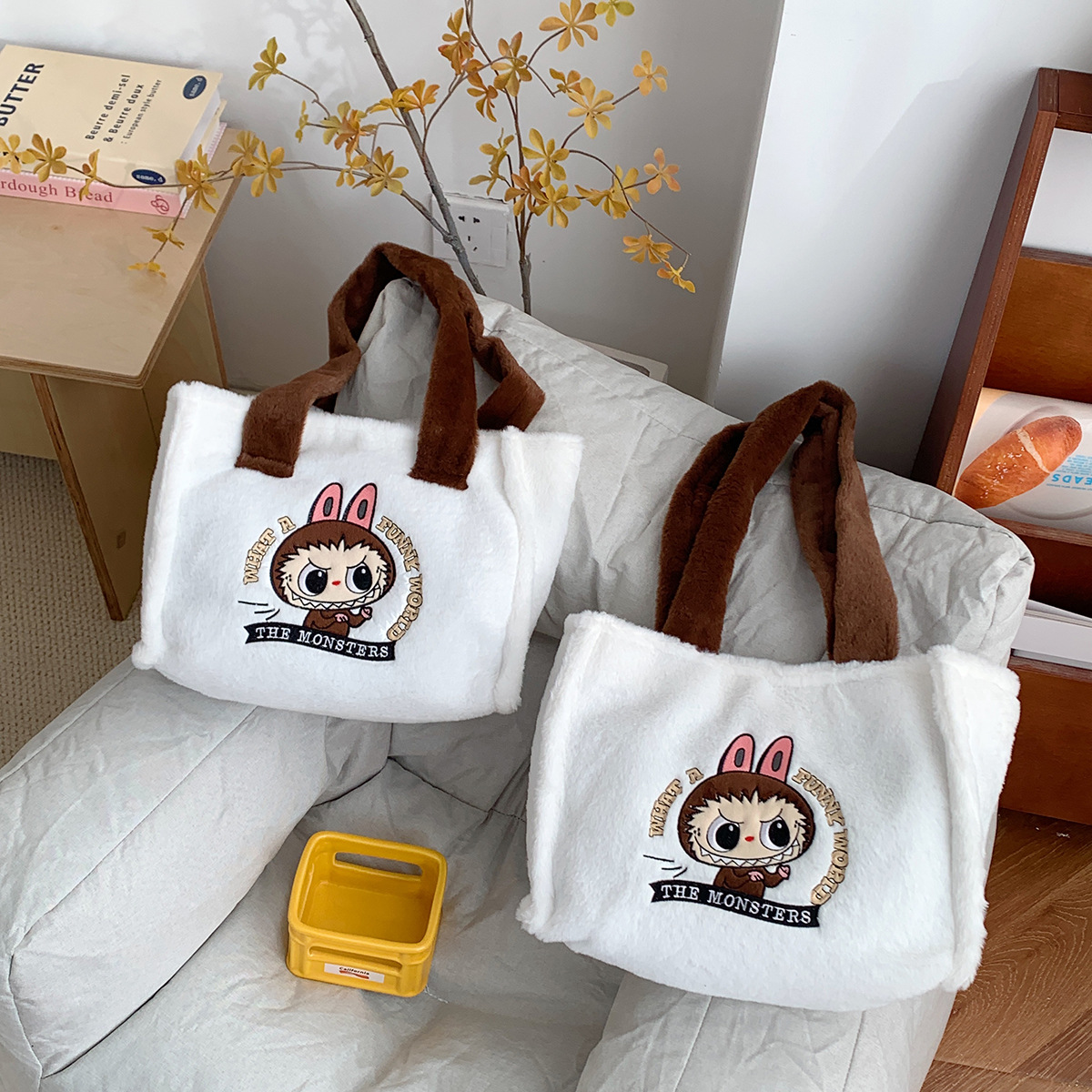 만화 버블 마트 파라다이스 라부 천 양털 가방 2025 새로운 대용량 토트 백 휴대용 핸드백