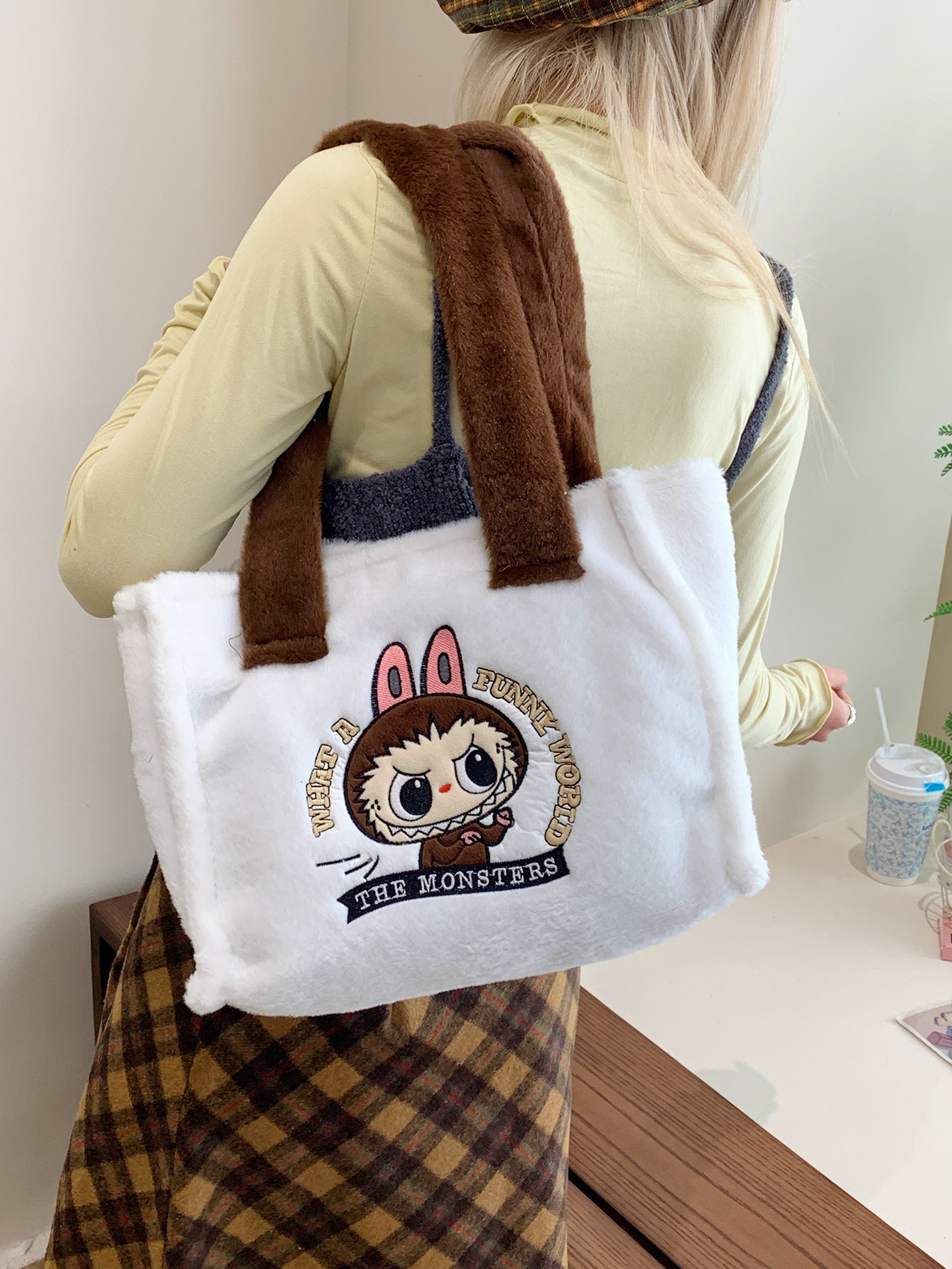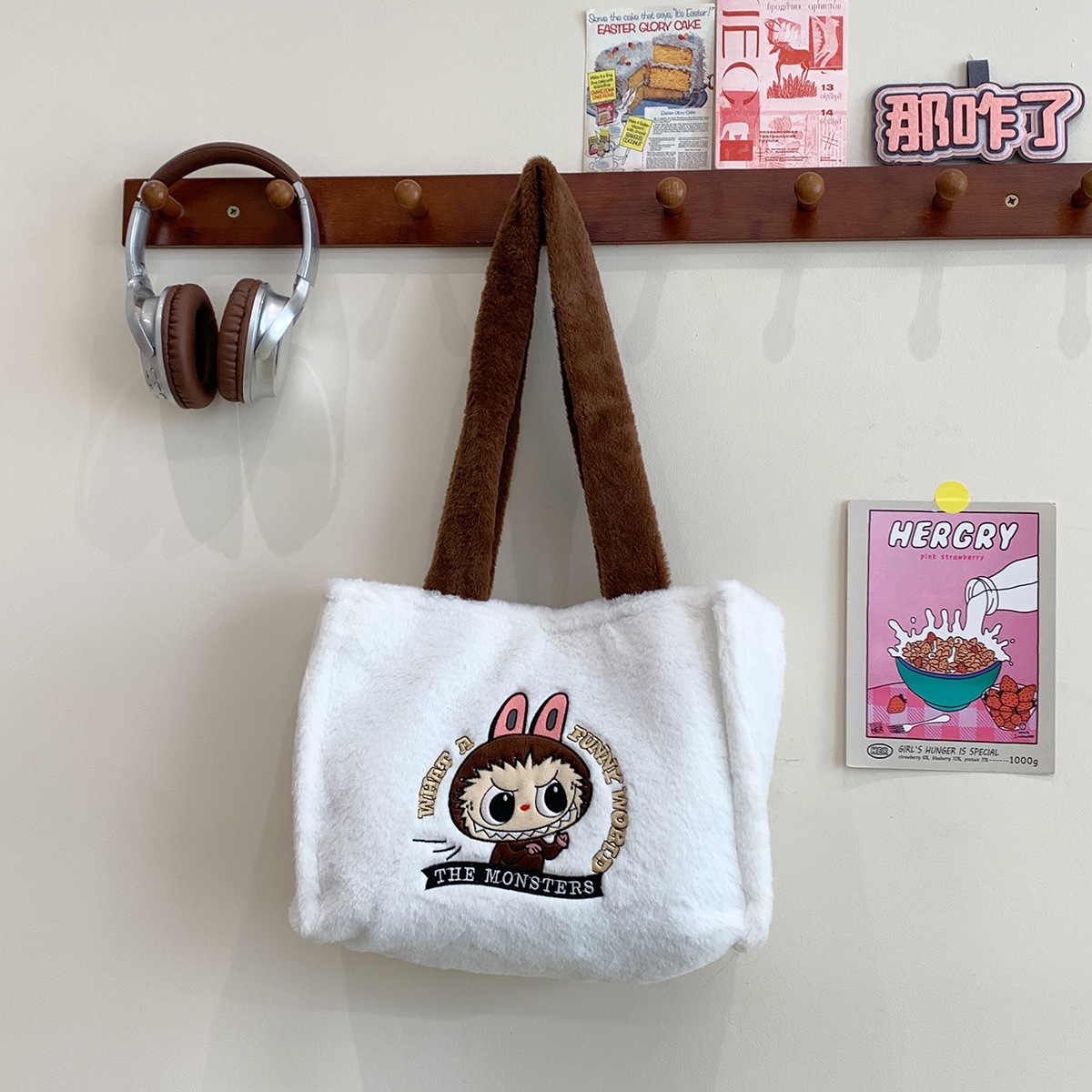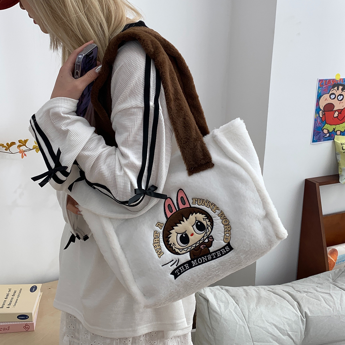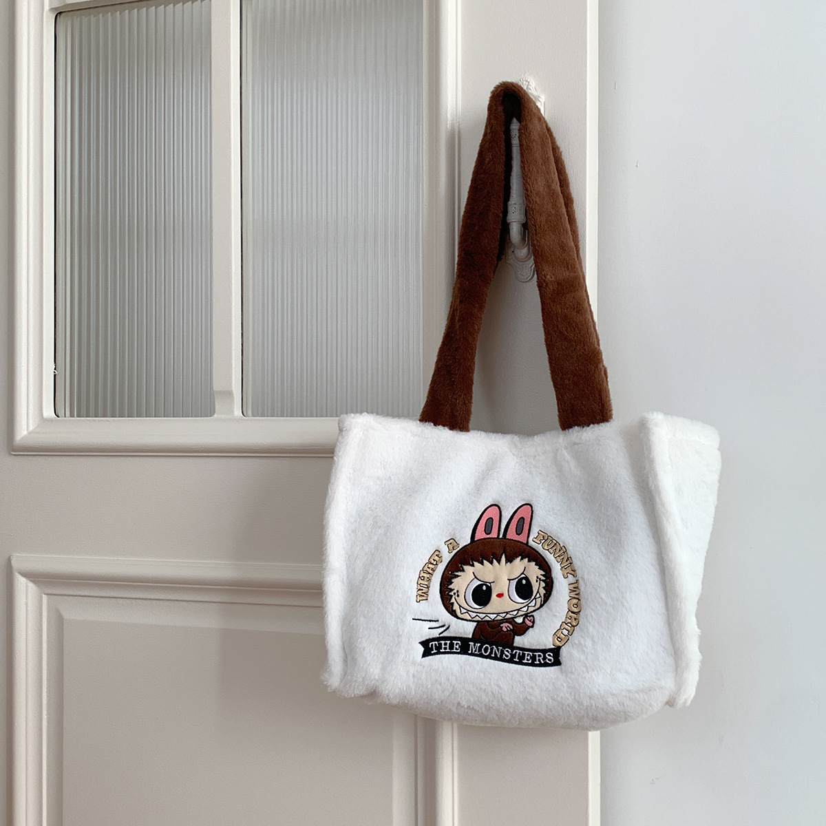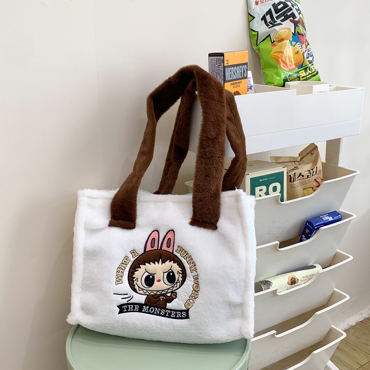 만화 버블 마트 파라다이스 라부 천 양털 가방 2025 새로운 대용량 토트 백 휴대용 핸드백