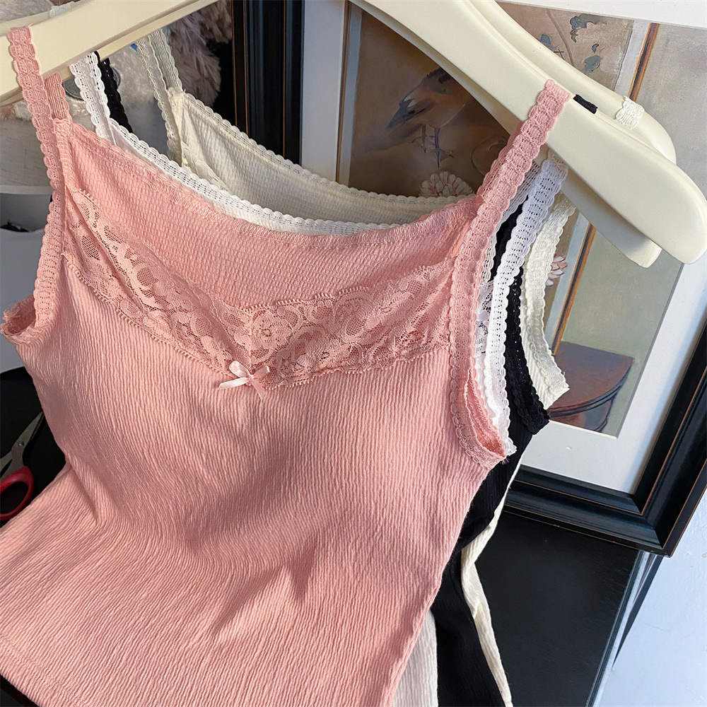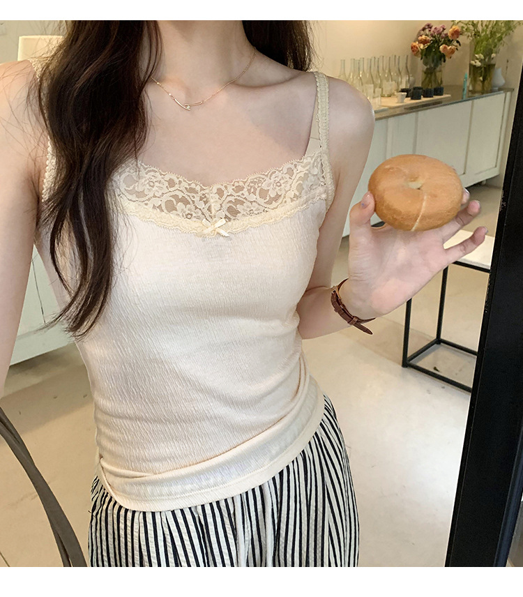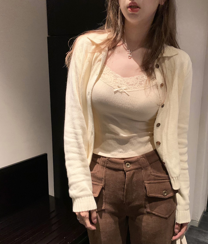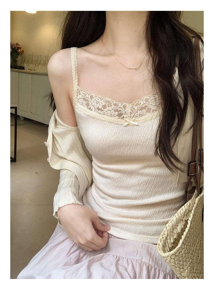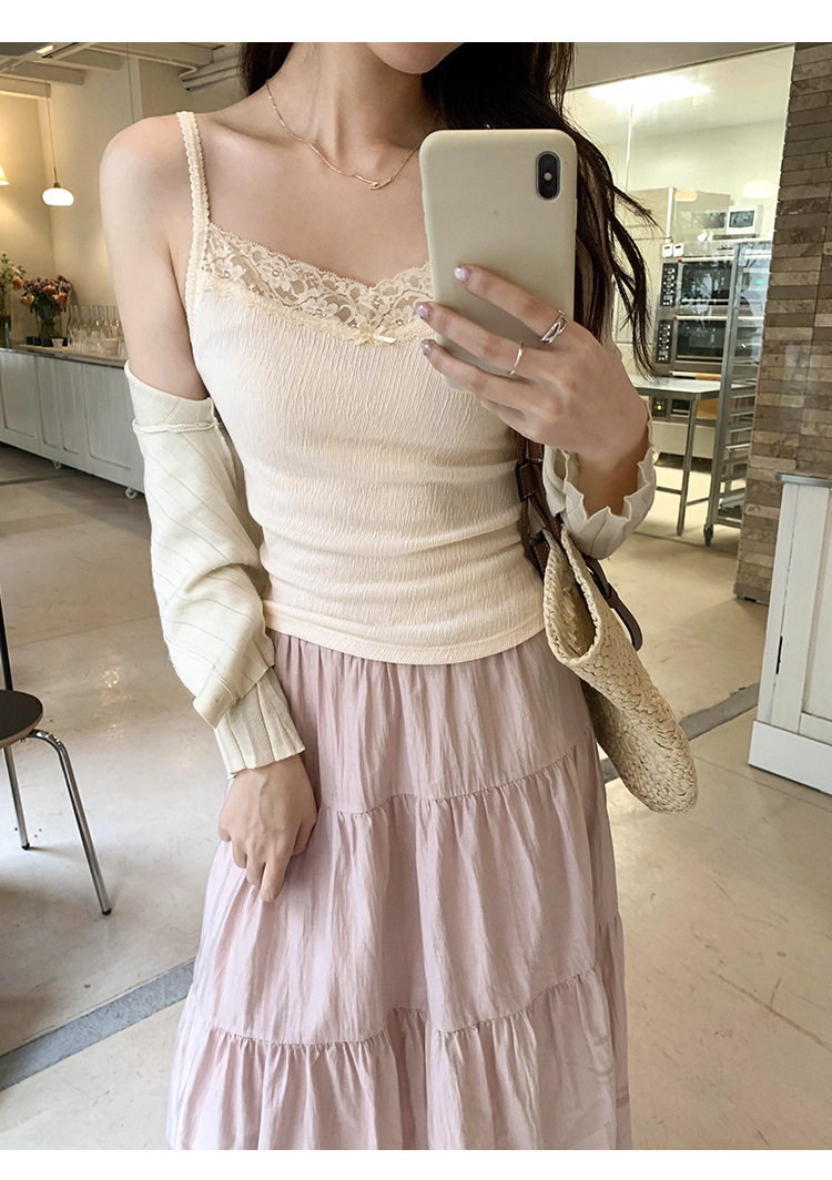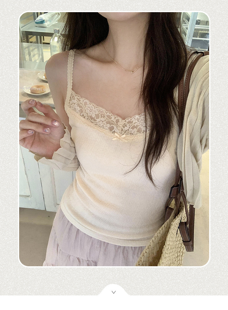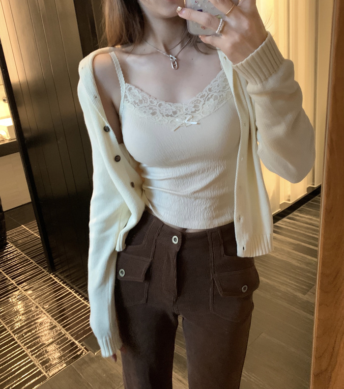 6841 # 프렌치 보우 레이스 카미 솔 퓨어 스위트 슬림 아우터 아름다운 뒷면 내부 쇼트 탑스토어 가기