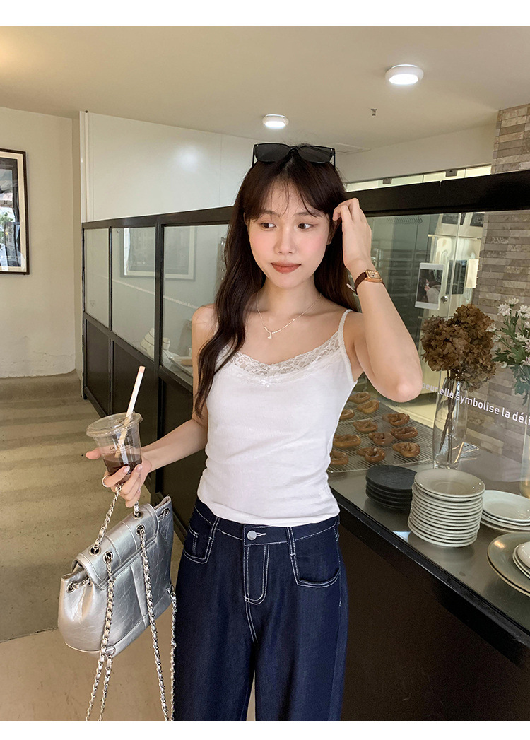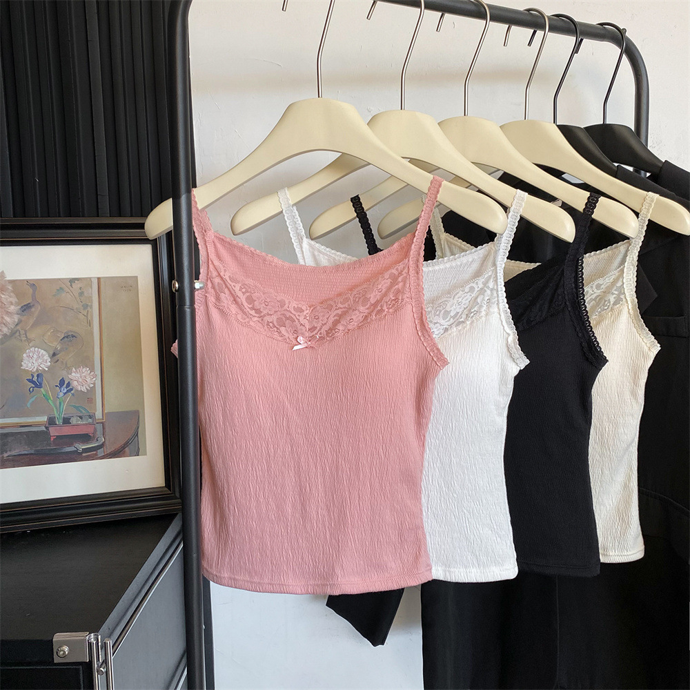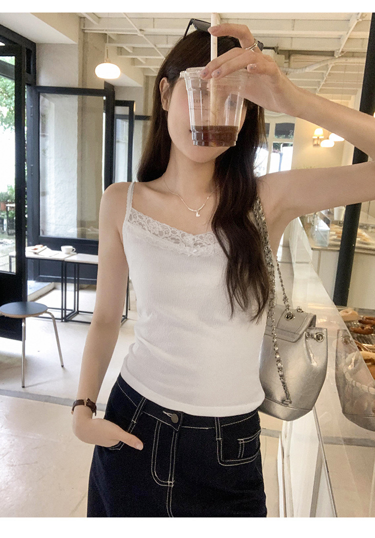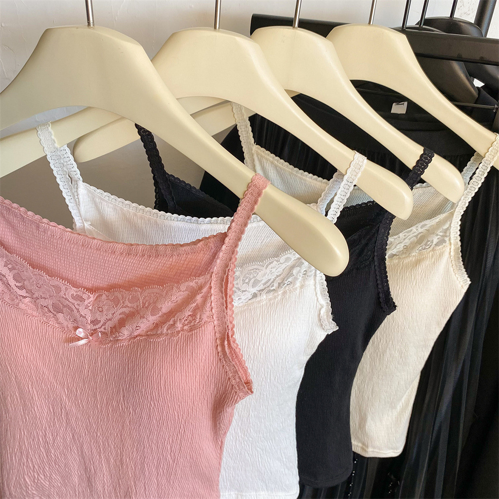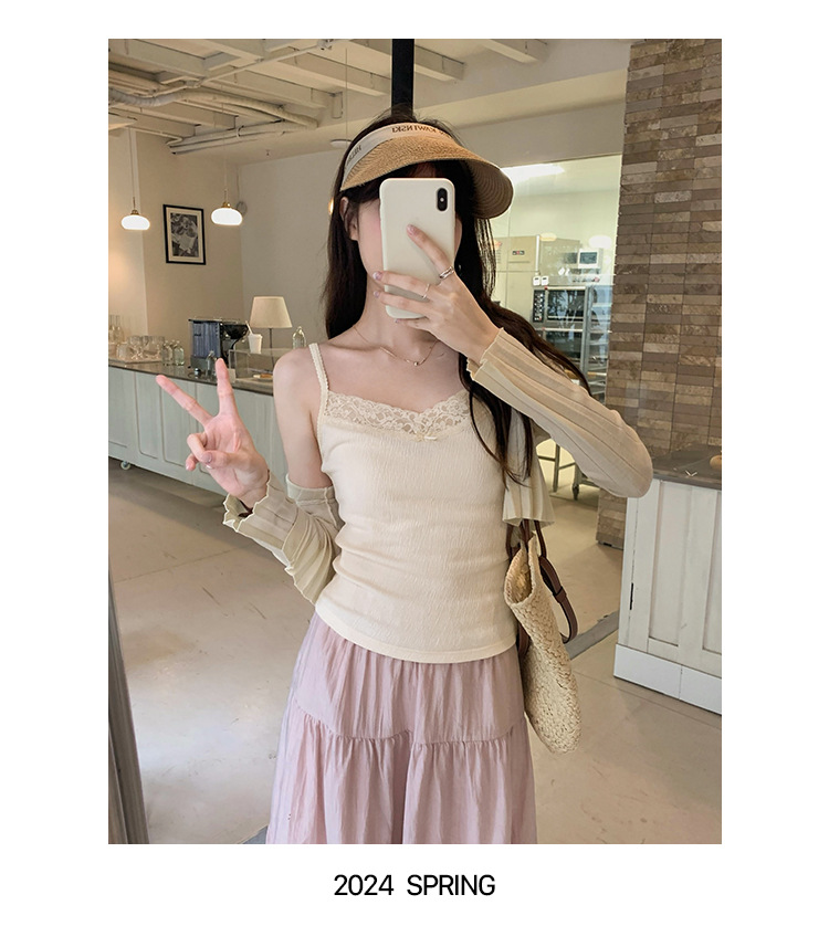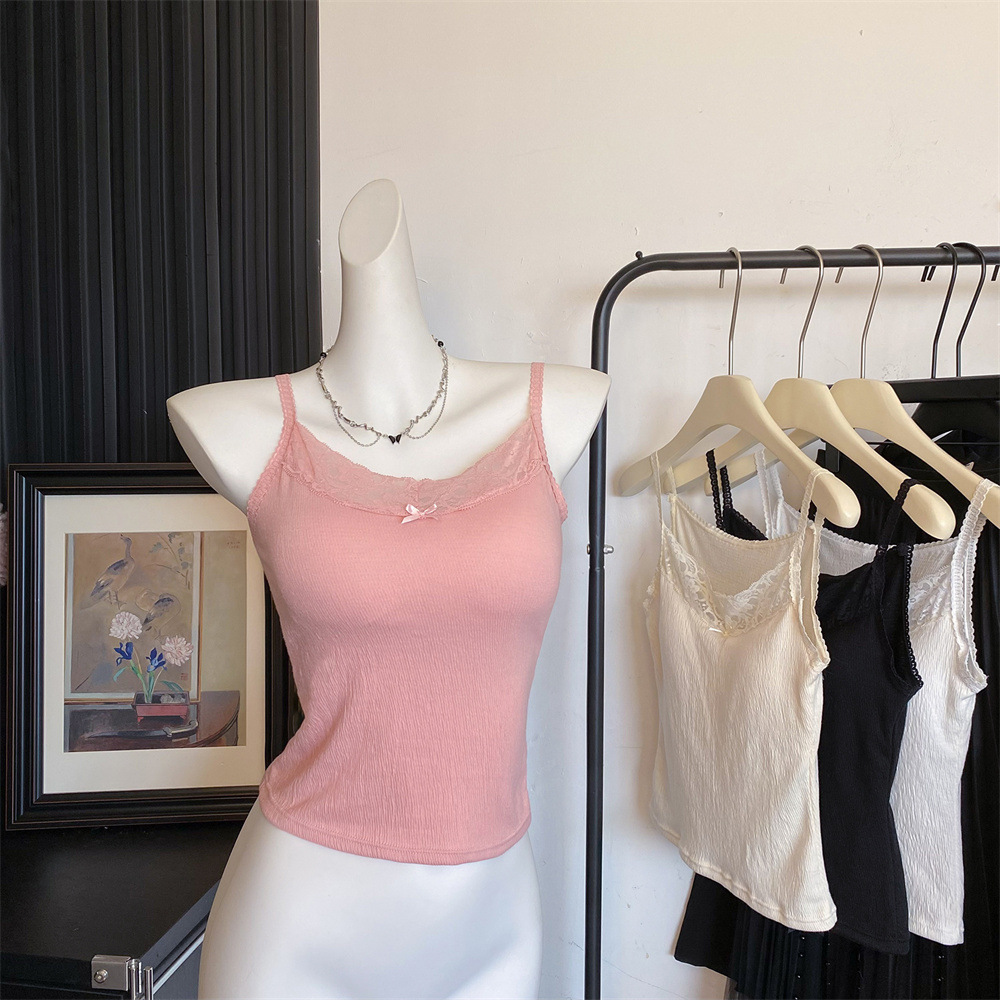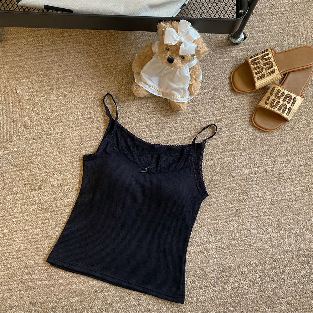 6841 # 프렌치 보우 레이스 카미 솔 퓨어 스위트 슬림 아우터 아름다운 뒷면 내부 쇼트 탑스토어 가기