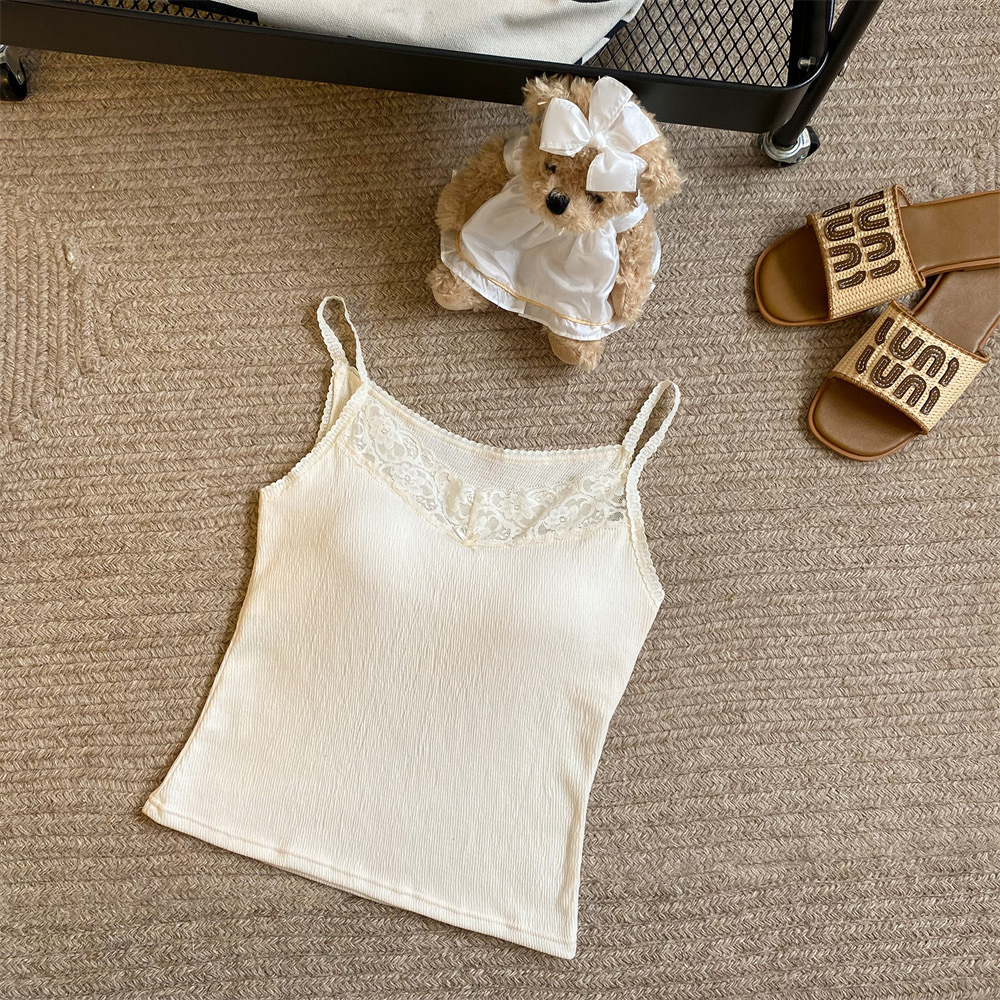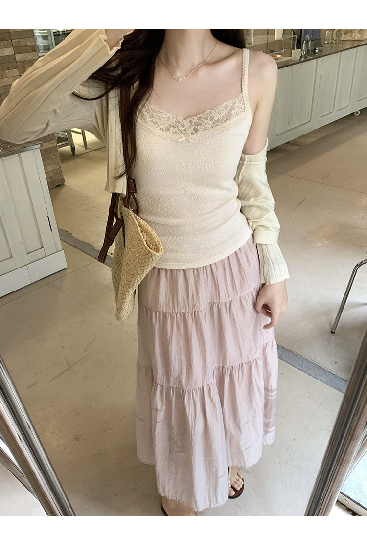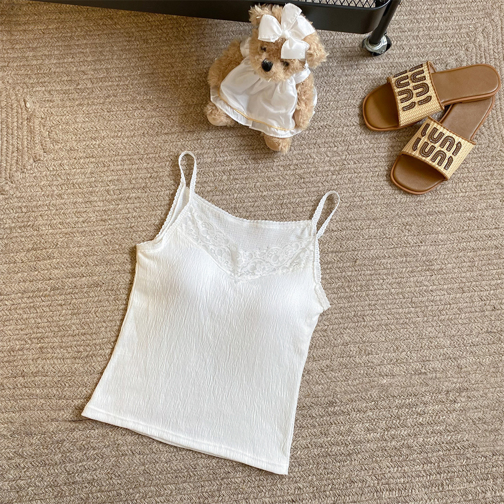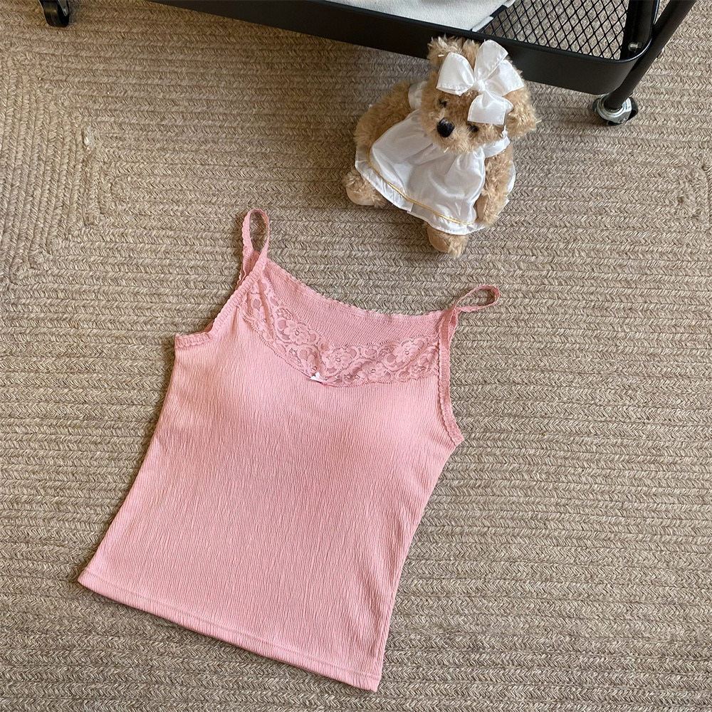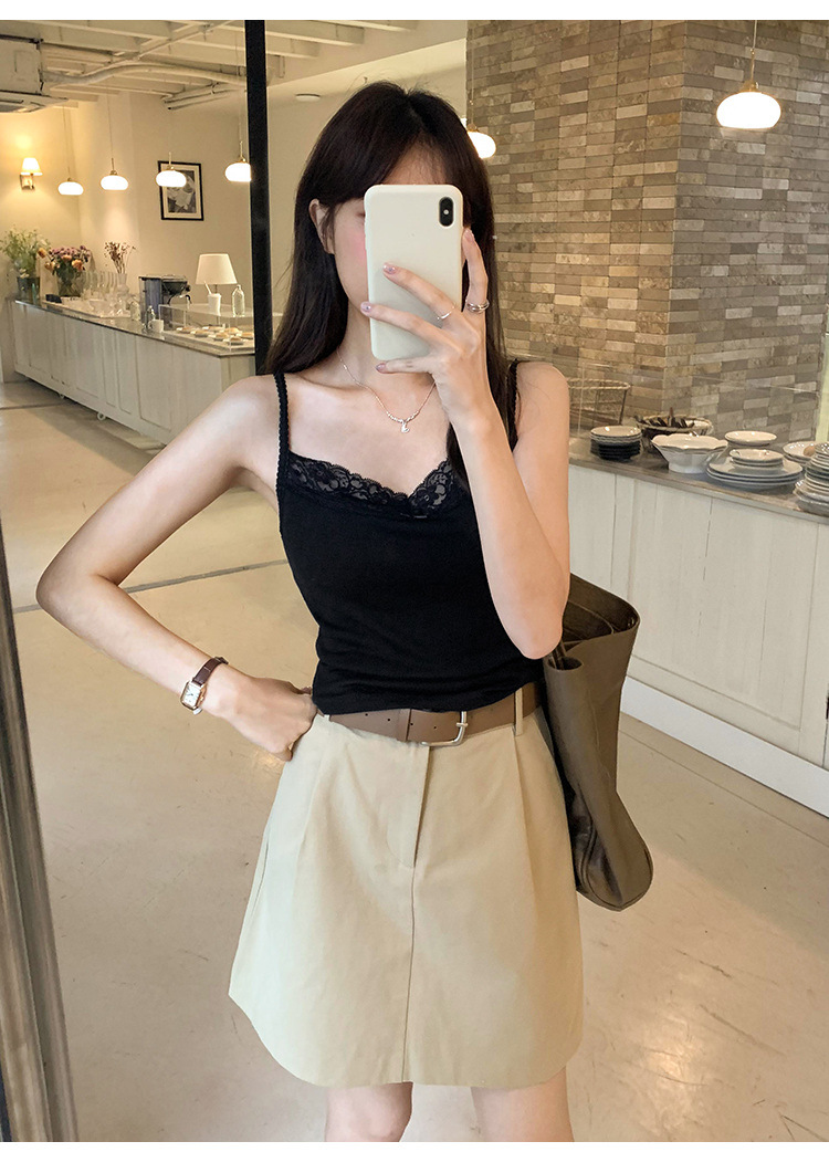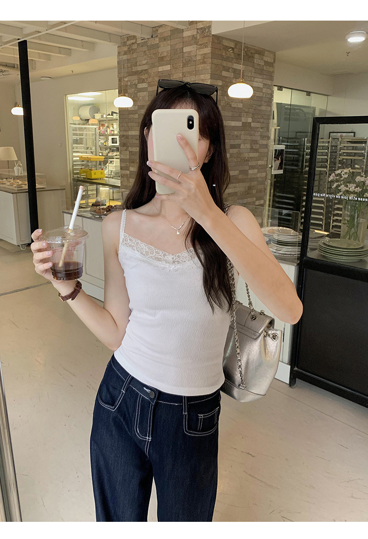 6841 # 프렌치 보우 레이스 카미 솔 퓨어 스위트 슬림 아우터 아름다운 뒷면 내부 쇼트 탑스토어 가기